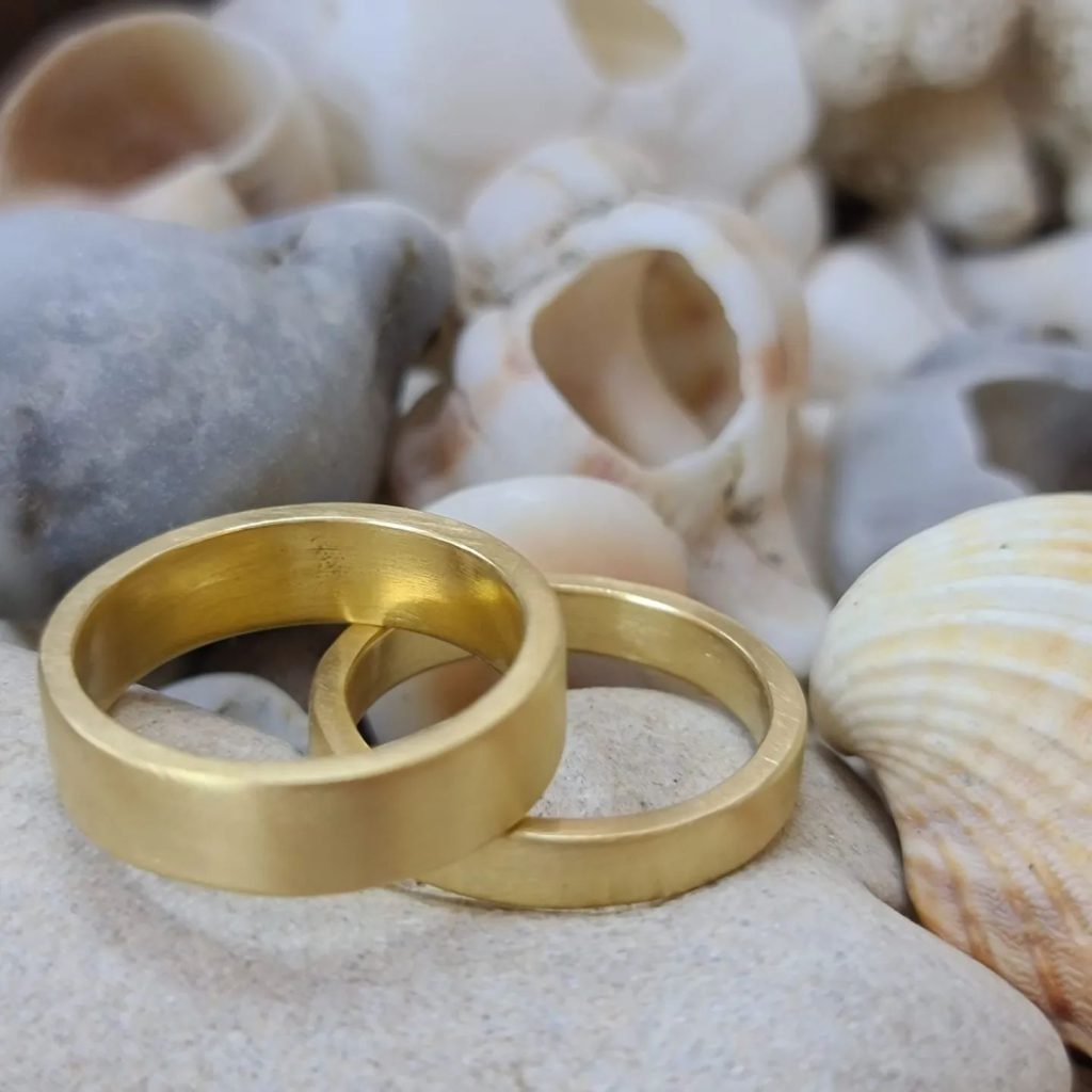 שתיהן מזהב מלא 22K — מראה רך, עמוק, כמעט משיי