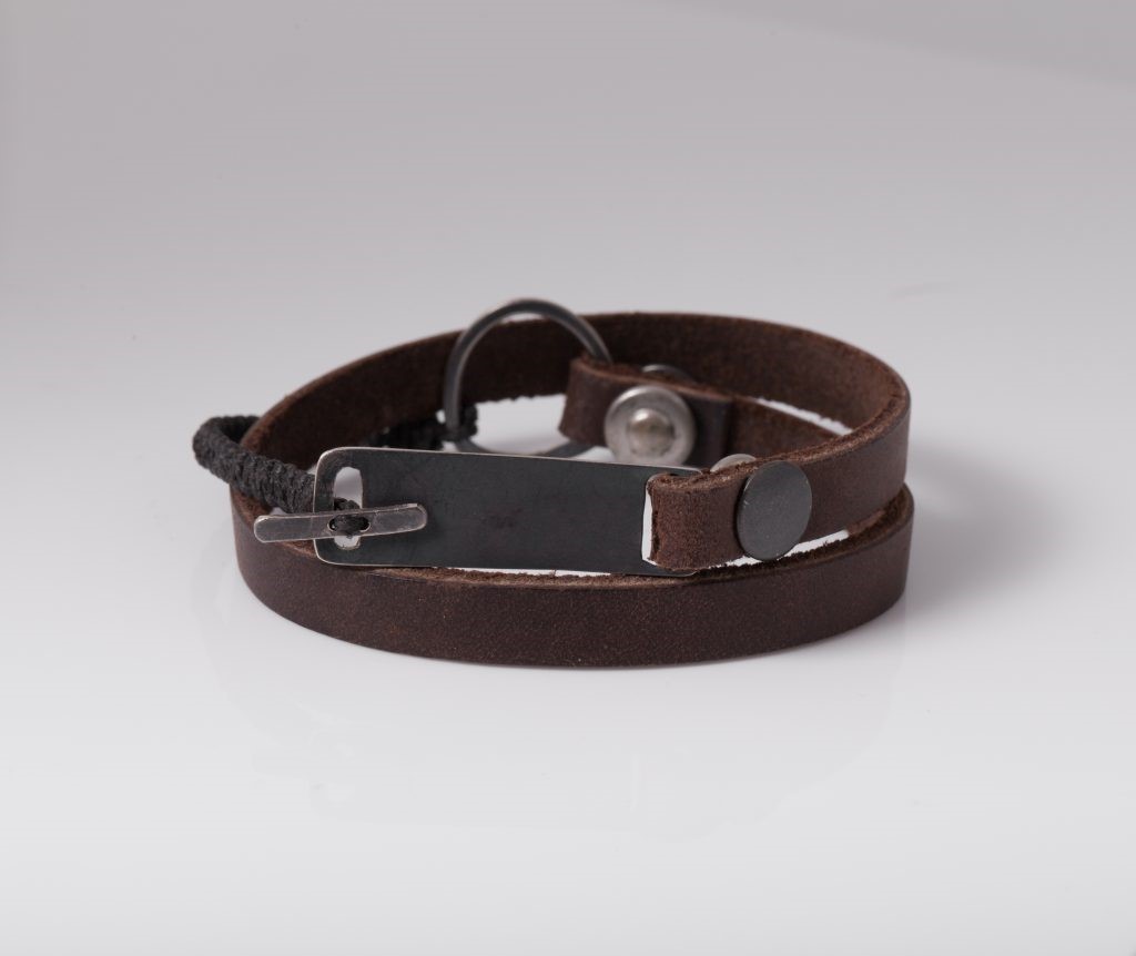 צמיד לוחית – כסף מושחר ורצועת עור משובח בעבודת יד