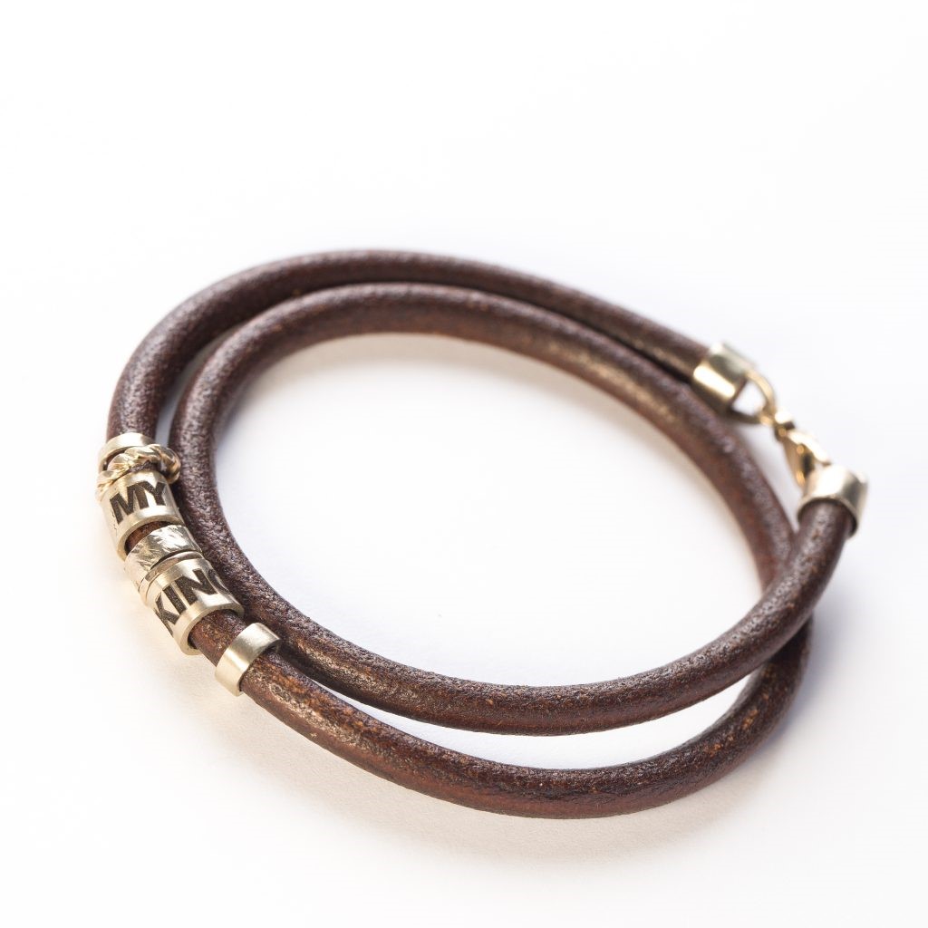 צמיד עור וזהב בעבודת יד – ניתן לחריטה אישית