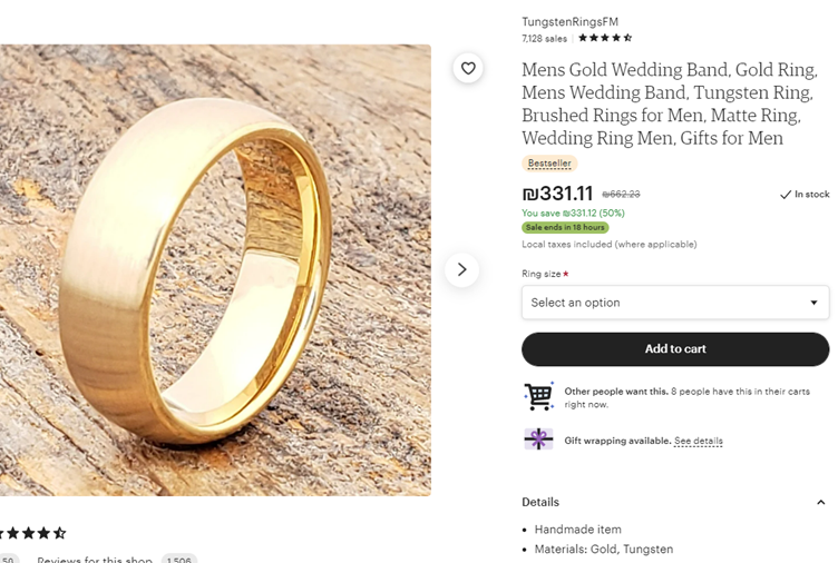 הטבעת הזו לא ממש זהב. זהו טונגסטן עם שכבה של ציפוי, כמות כזו של זהב רחוקה מעלות של 331 שח ?