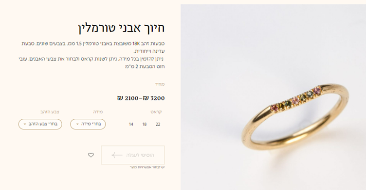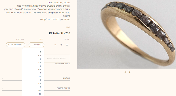 מתוך האתר שלנו: " ניתן להזמין בכל מידה ניתן לשנות קראט ולבחור את צבעי האבנים.."