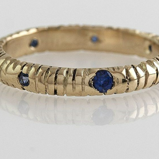 לטבעות אלו עיצוב דומה, אך רק אחת היא בעבודת יד ולא בייצור המוני (משמאל למעלה).