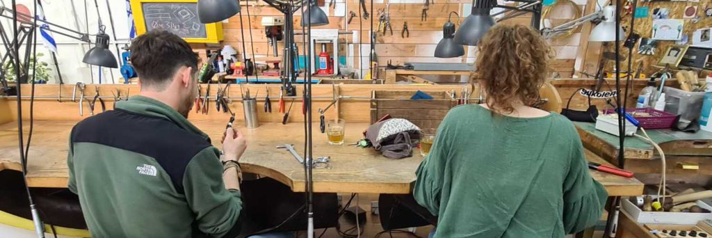 הגרסה הזוגית הכי “איקונית” היא סדנת הכנת טבעות נישואין: אתם מעצבים ויוצרים יחד את הטבעות שתענדו תחת החופה – בעבודה זוגית שמחברת בין תהליך היצירה לסיפור שלכם. בסדנה הזו יש דגש על ליווי אישי, ציוד מקצועי, גימור ברמה מקצועית, וגם פגישת עיצוב מקדימה כדי להגיע ליום הסדנה עם החלטות נכונות (סגנון, טקסטורה, פרופורציות ועוד).