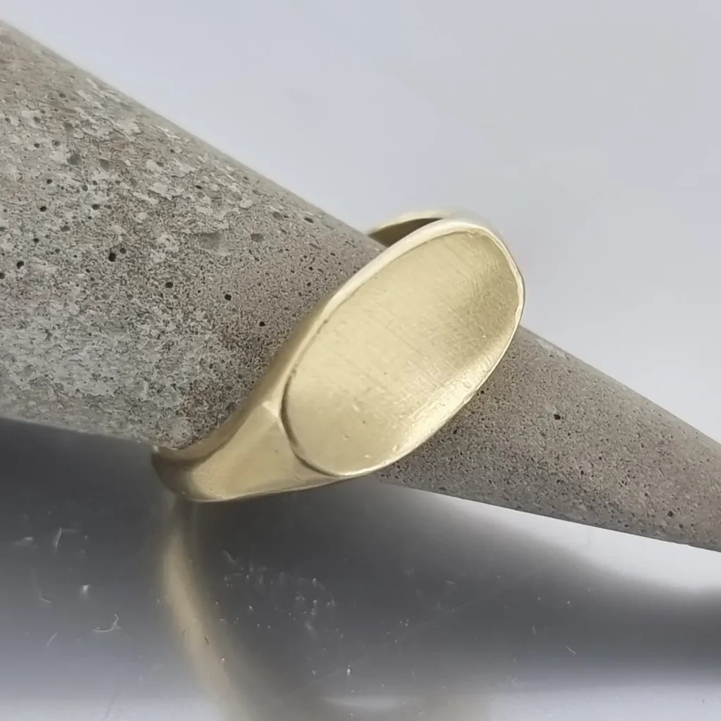 טבעת חותם זהב 18 קראט בעיצוב אובלי עבודת יד אישית