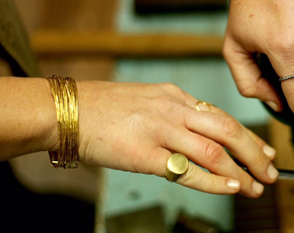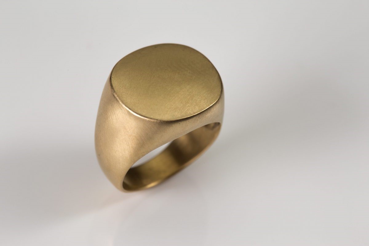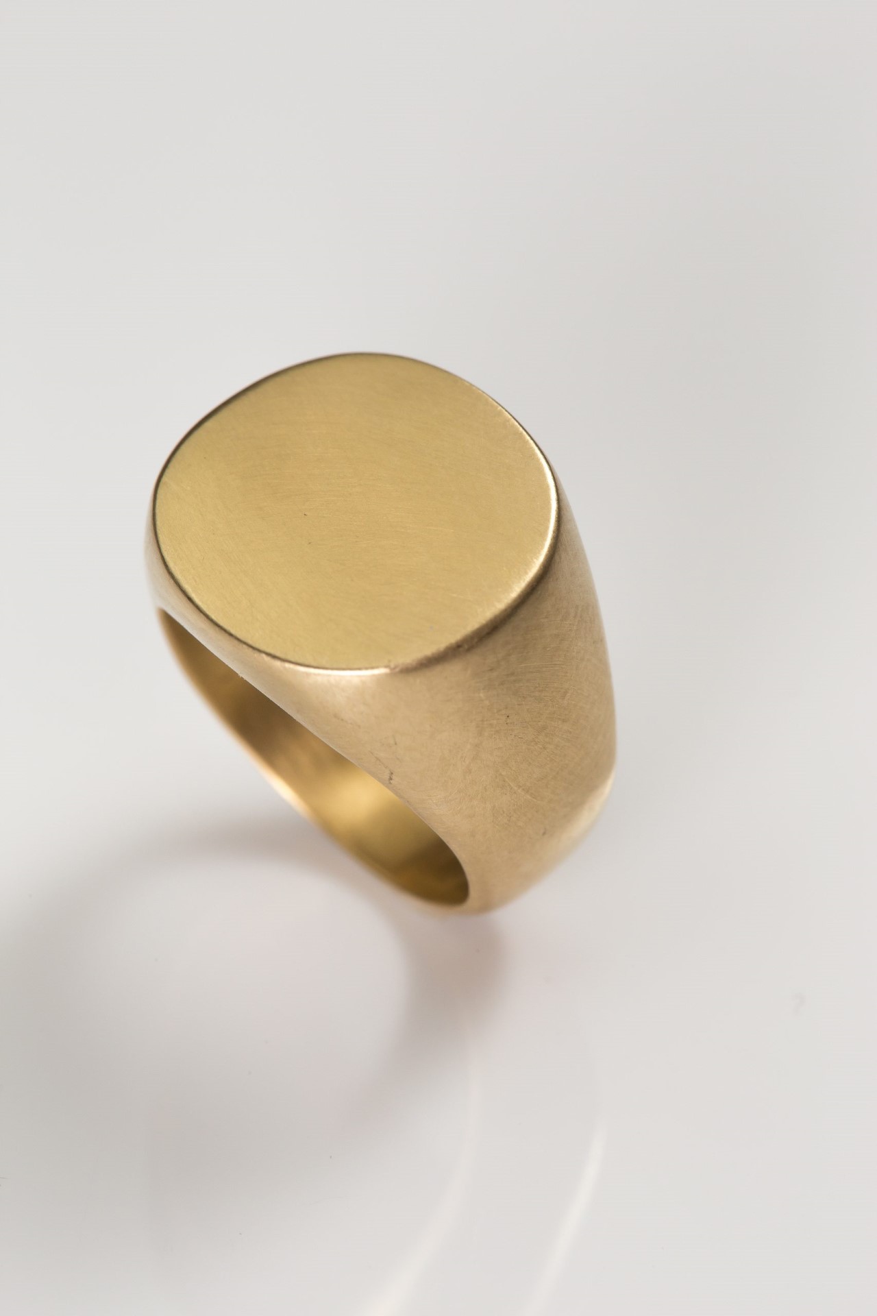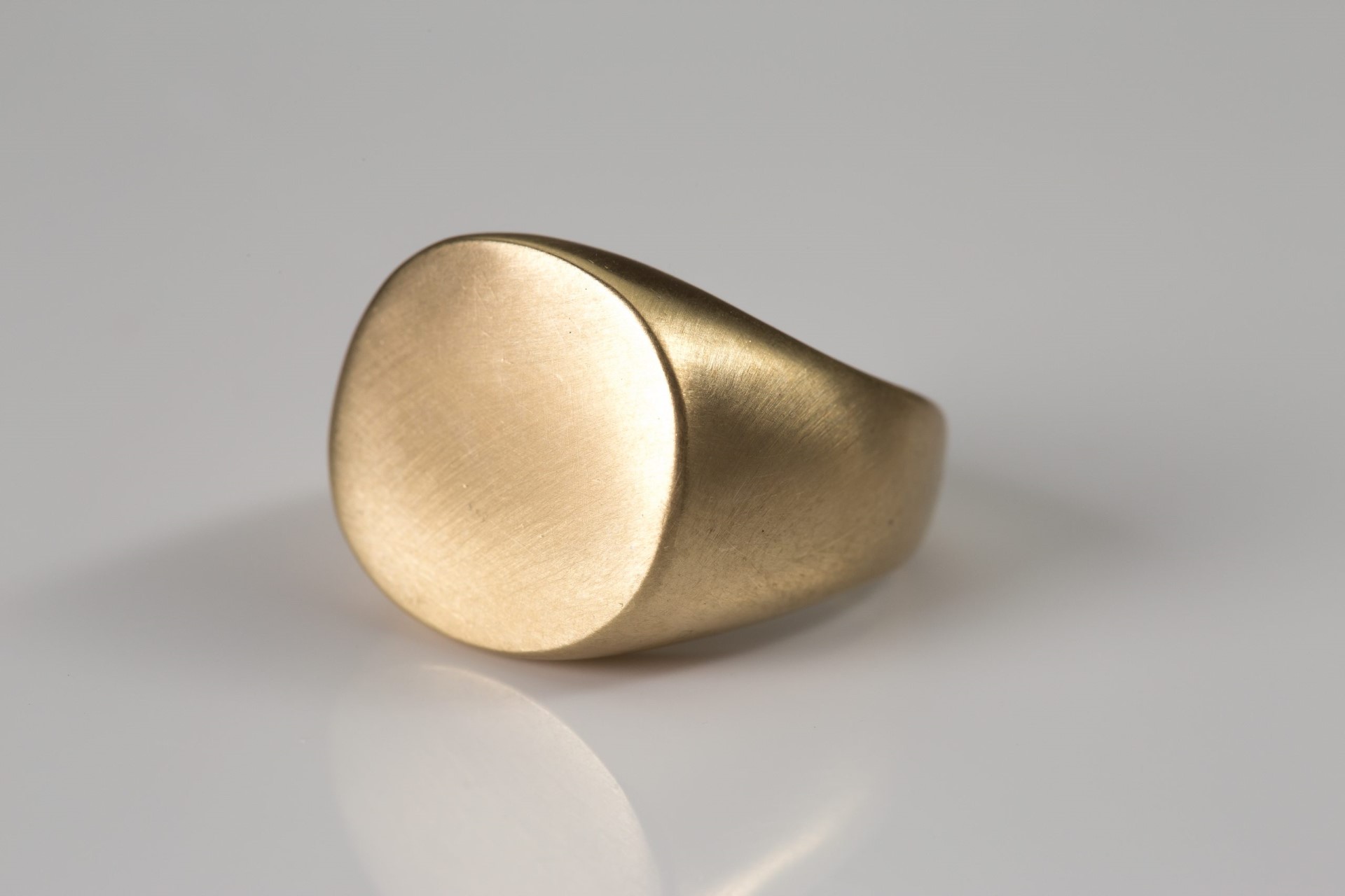 טבעת חותם מזהב 18 קראט בעבודת יד, בעיצוב קלאסי ונקי עם נוכחות שקטה ומרשימה.