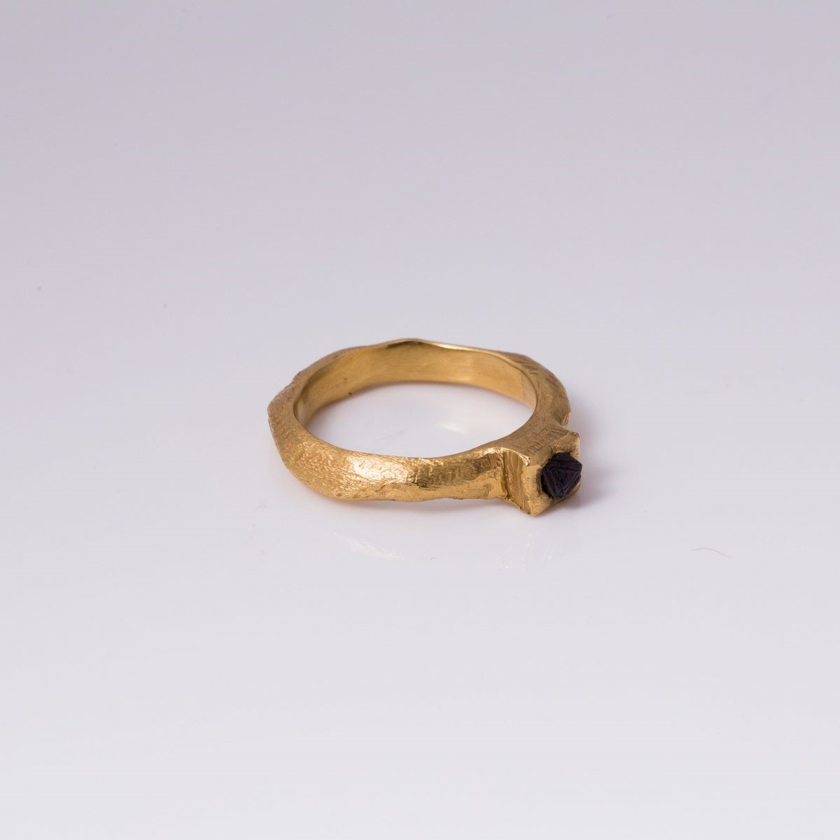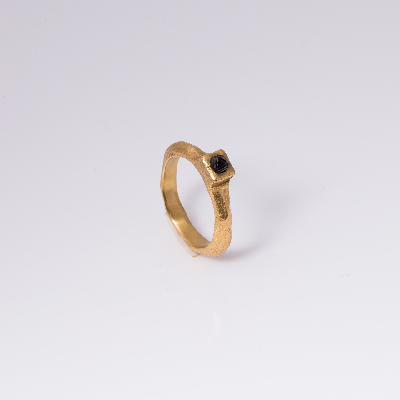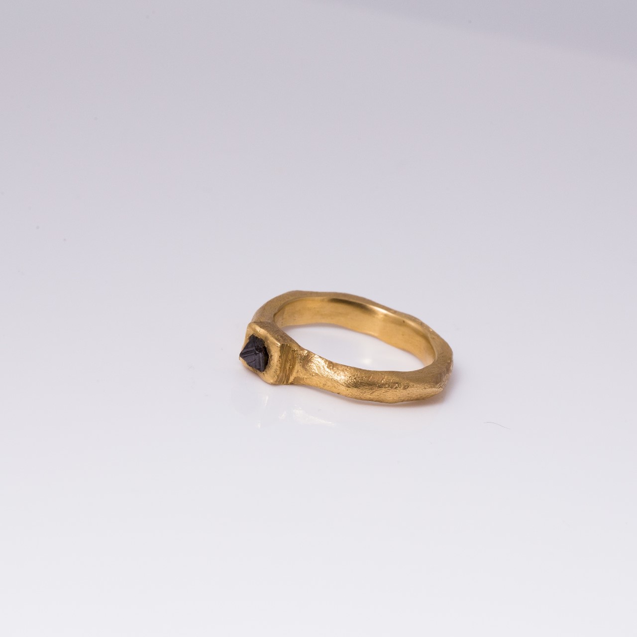 טבעת זהב מפוסלת עם יהלום גולמי – ייחוד בעבודת יד