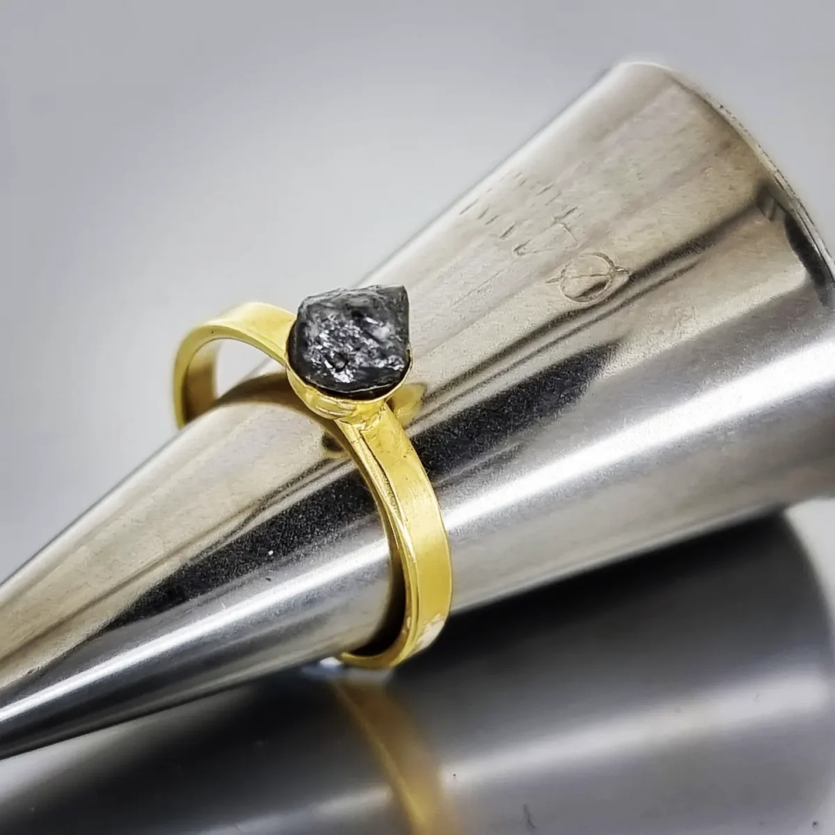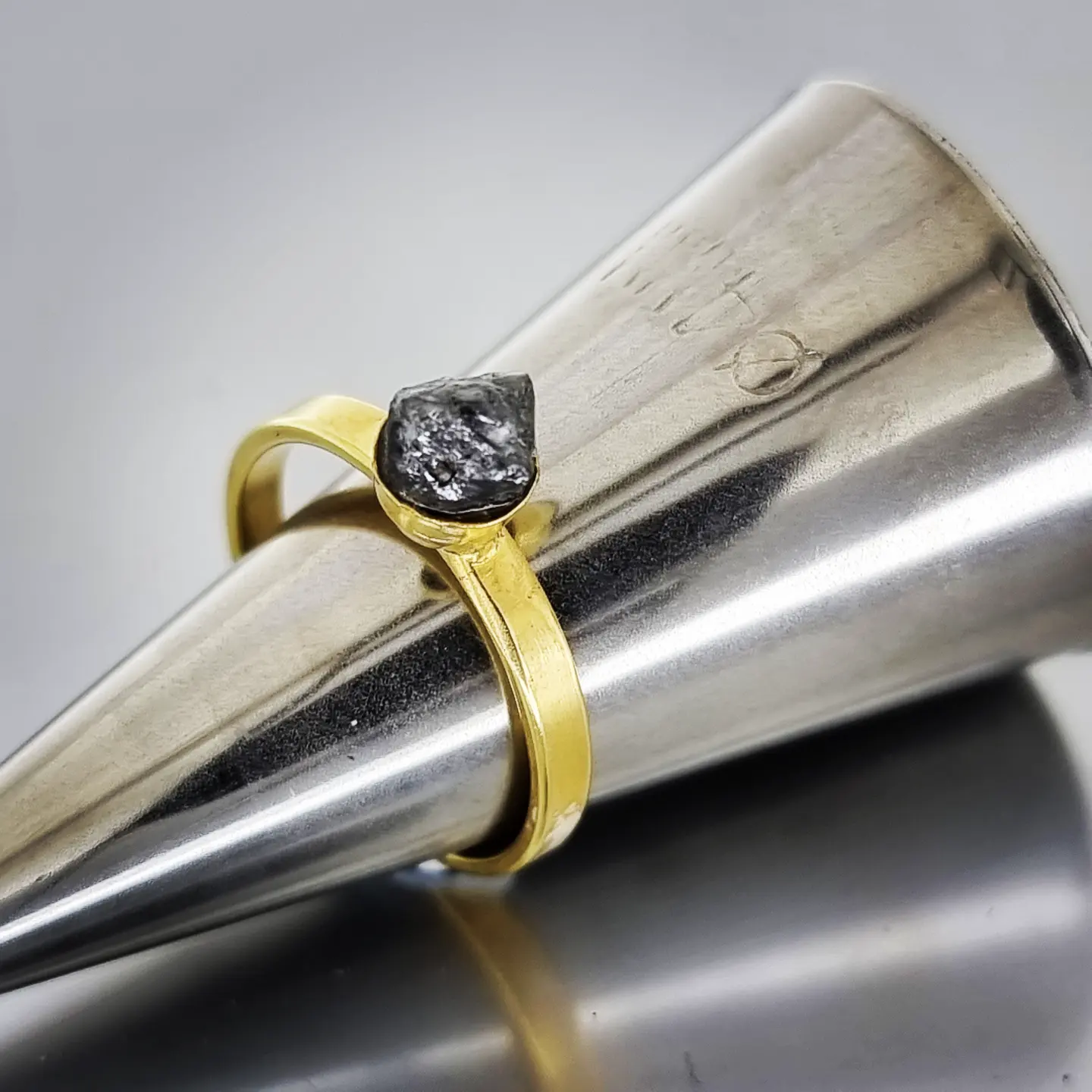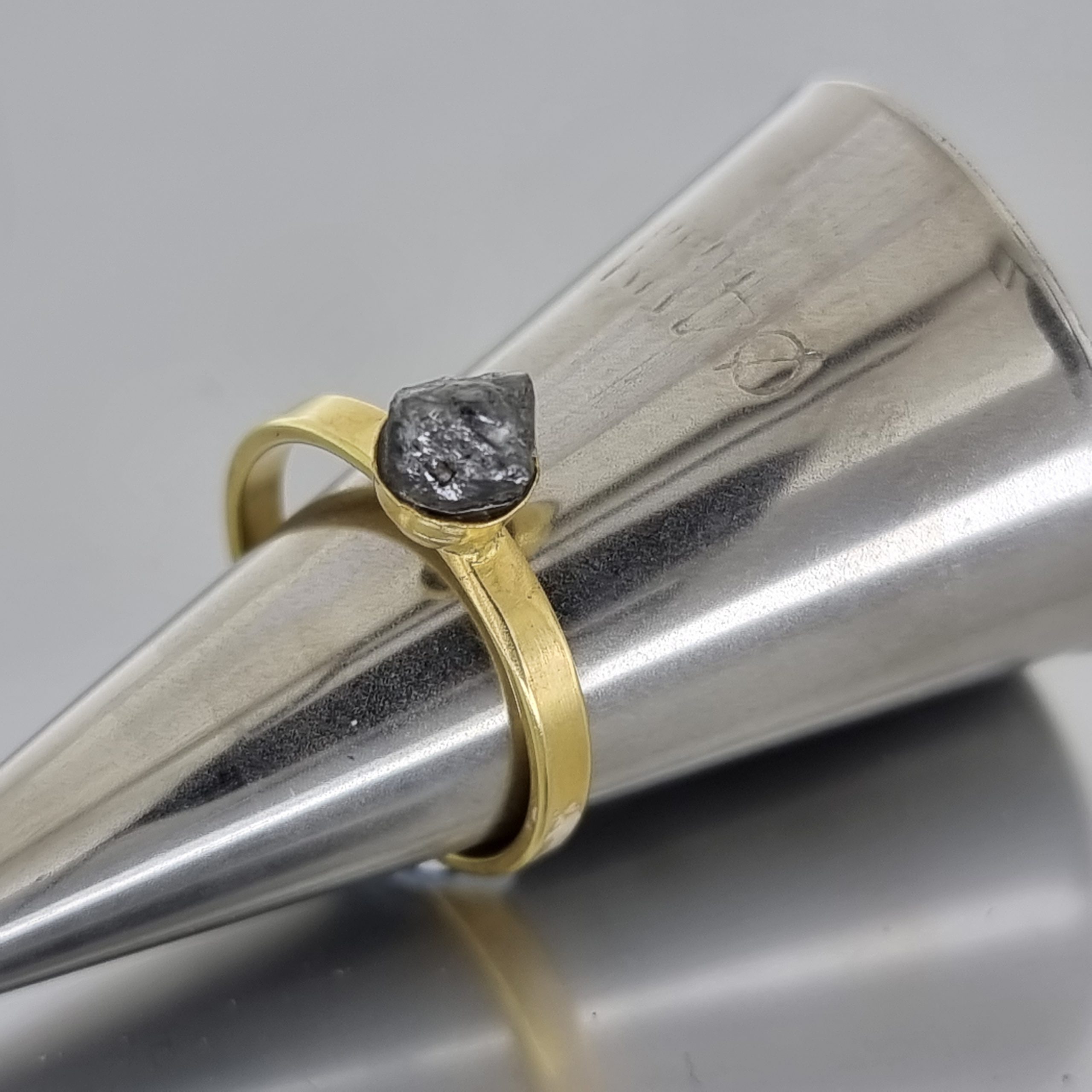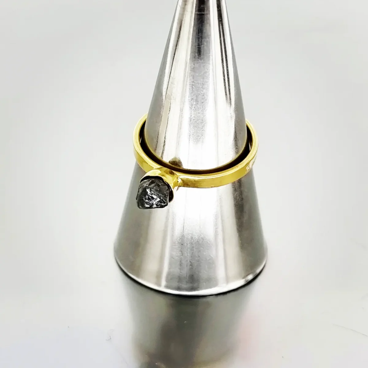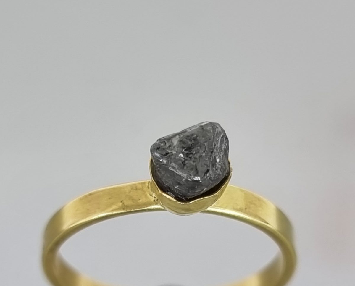 טבעת זהב 18 קראט בעובי 2.5 מ"מ, משובצת ביהלום גולמי טבעי ויחיד מסוגו