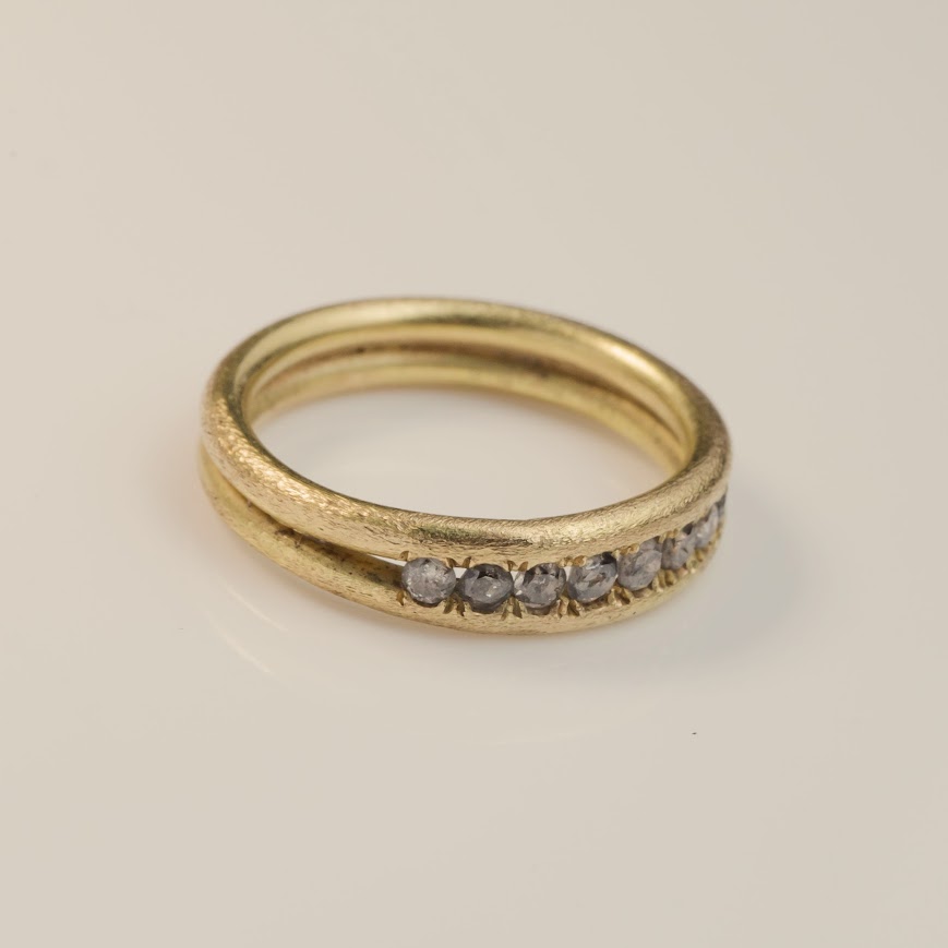 משובצת בשורת יהלומים גולמיים בגודל משתנה (1.2–2.5 מ"מ),