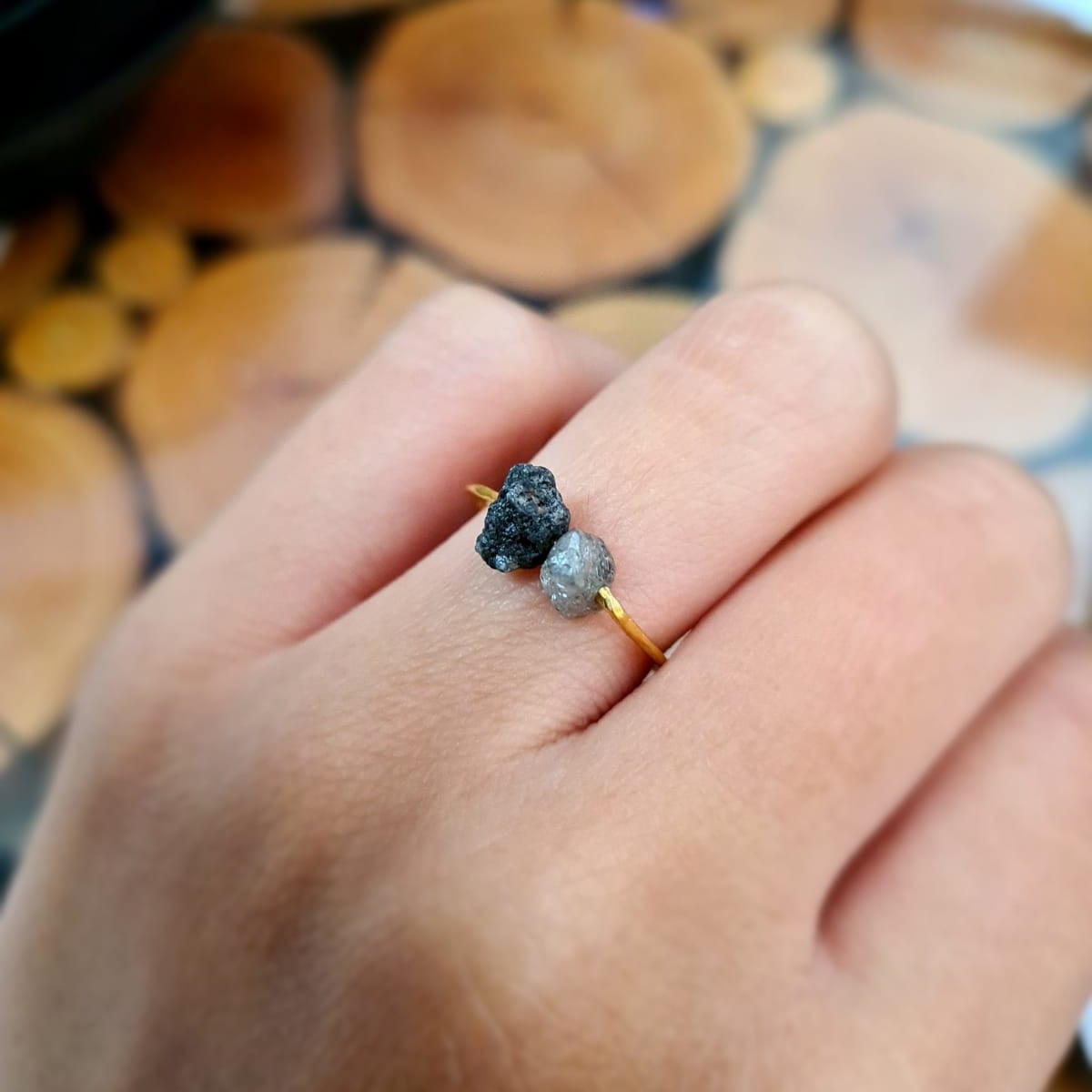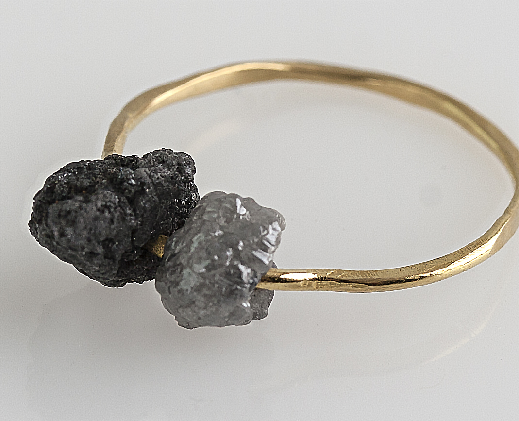 משובצת בשני יהלומים גולמיים יחידתיים (One of a Kind) –