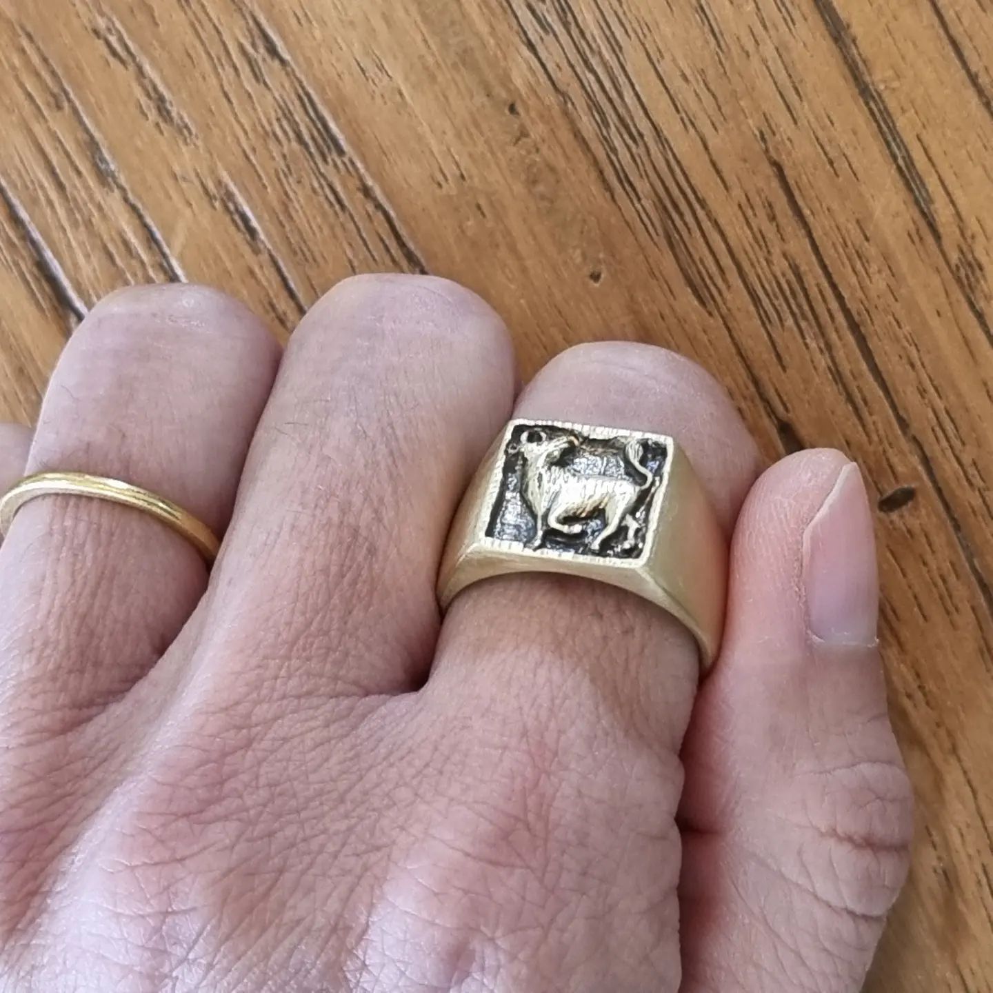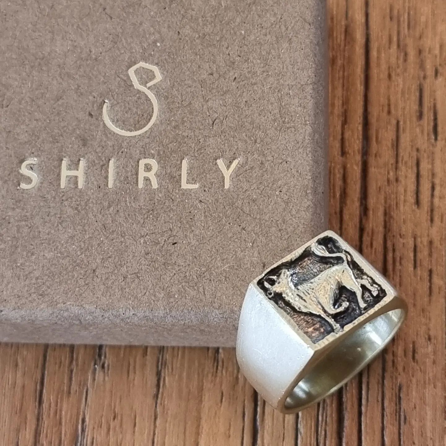 הלקוח ביקש טבעת בהשראת טבעת ישנה שאביו המנוח נהג לענוד – שור חרוט, עוצמתי, כמו שנצרב בזיכרון הילדות.
