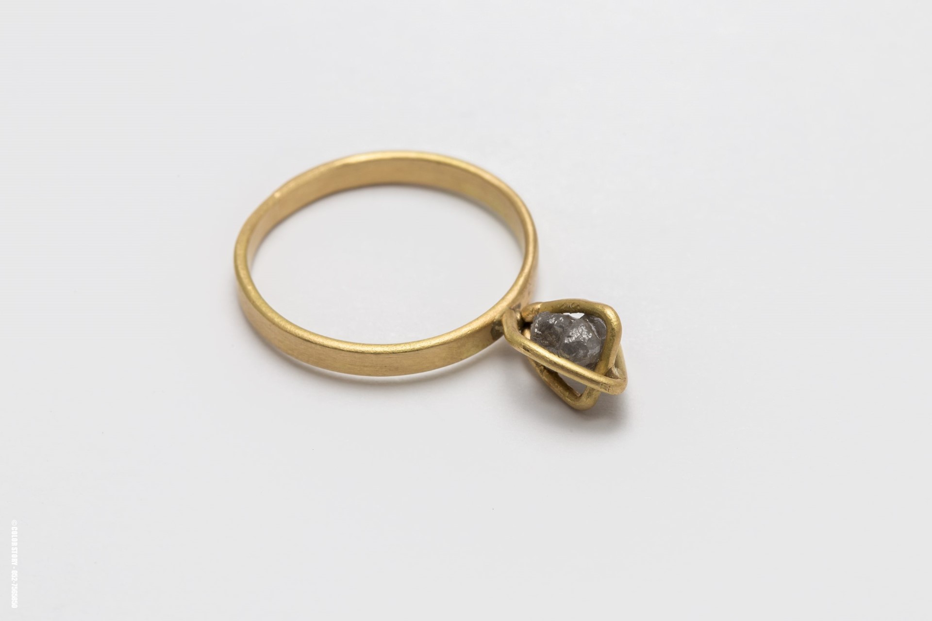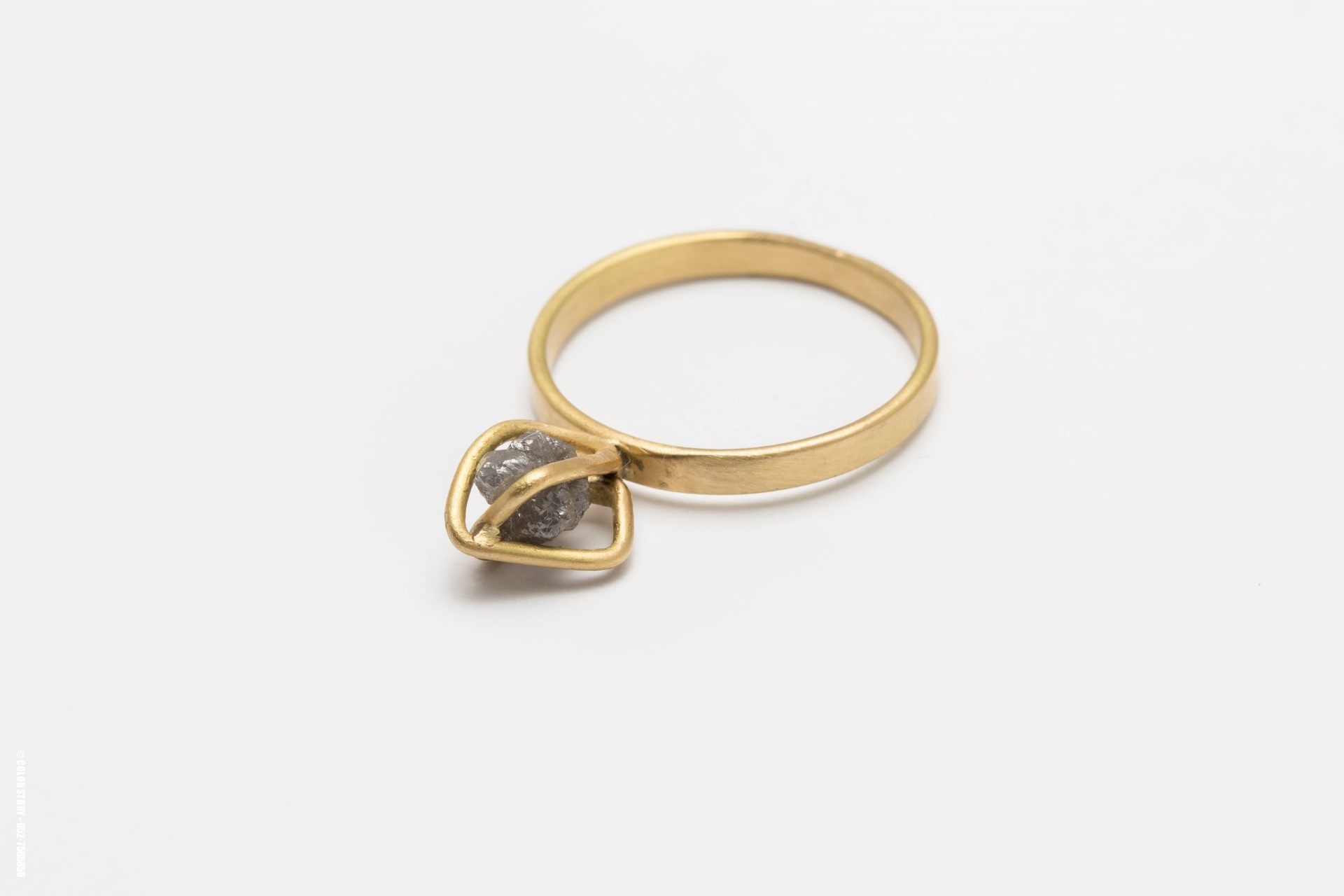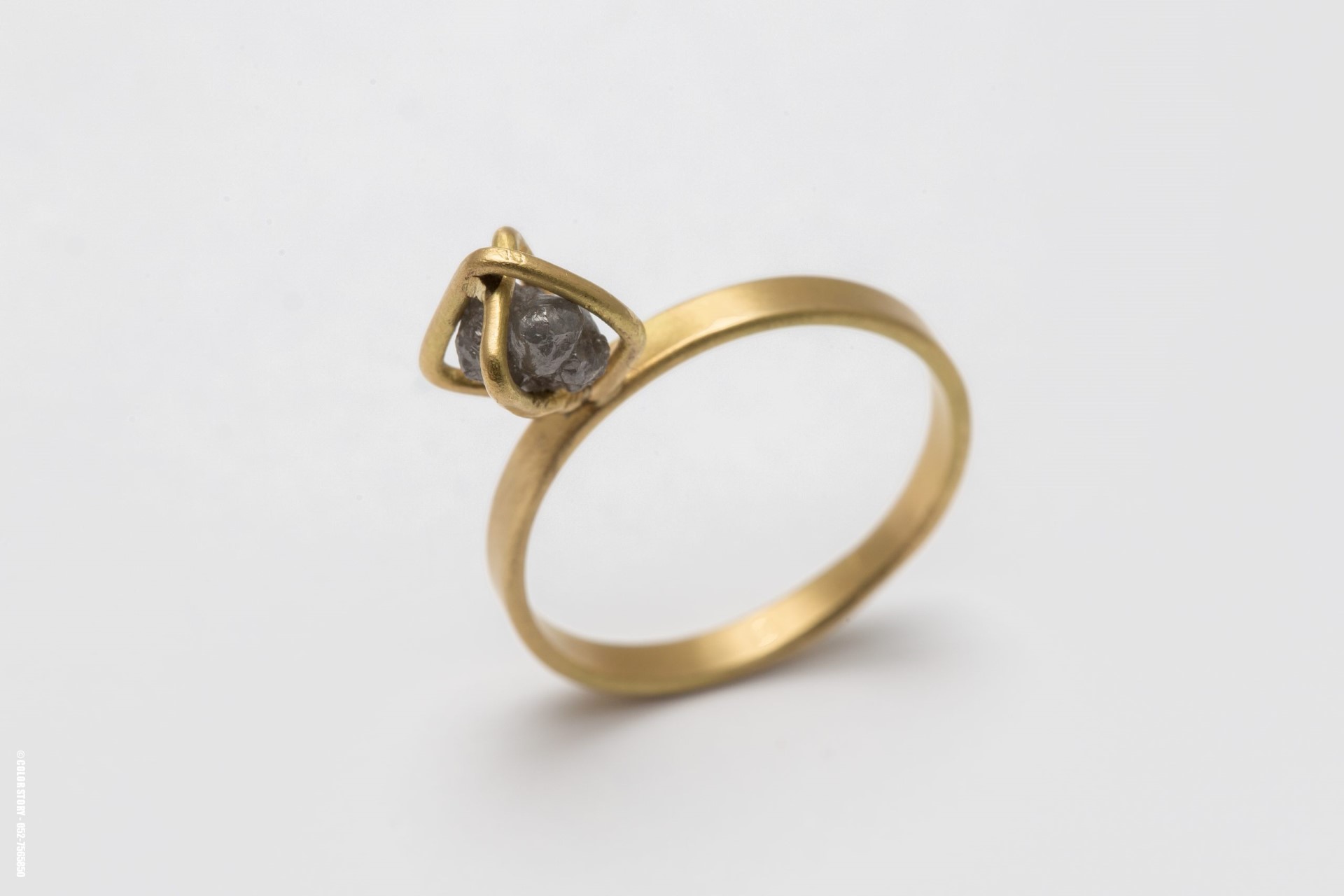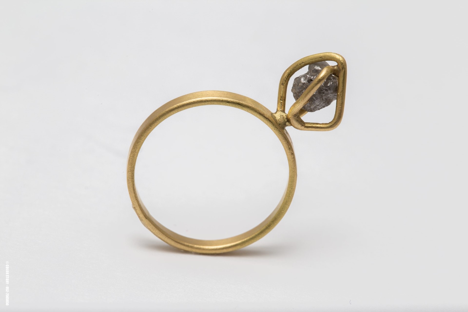 טבעת זהב עם יהלום גולמי כלוא – אלגנטית עם נוכחות עדינה