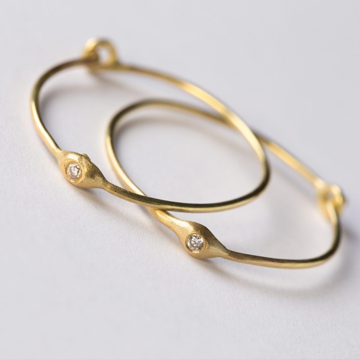 עגילי חישוק זהב 18 קראט עם יהלום עדין