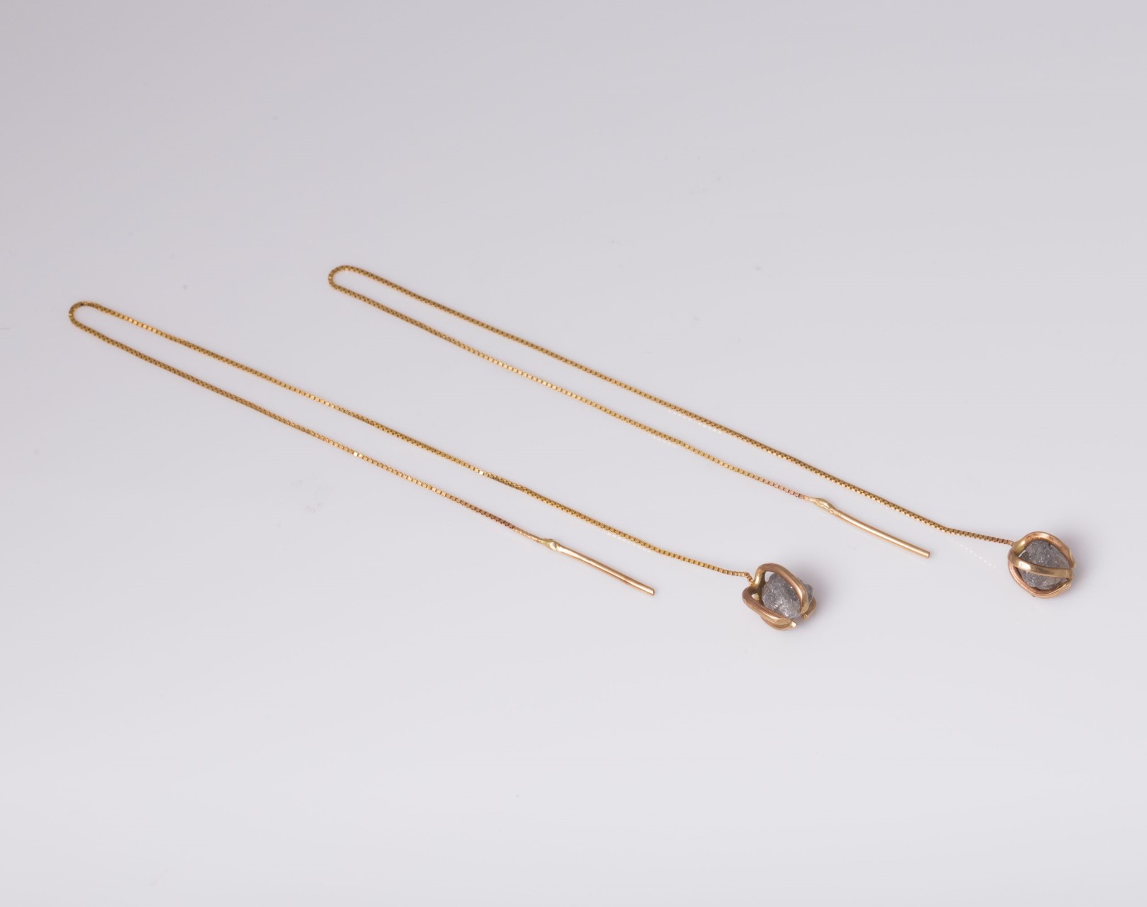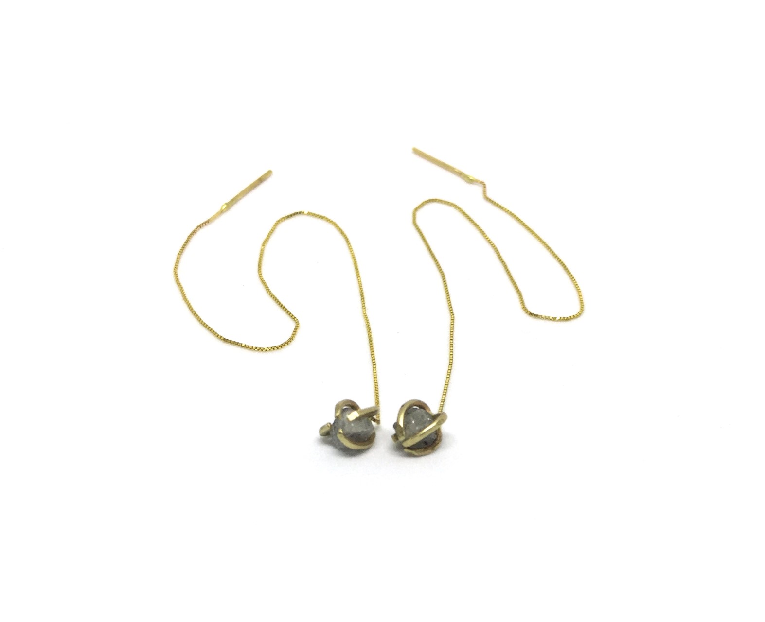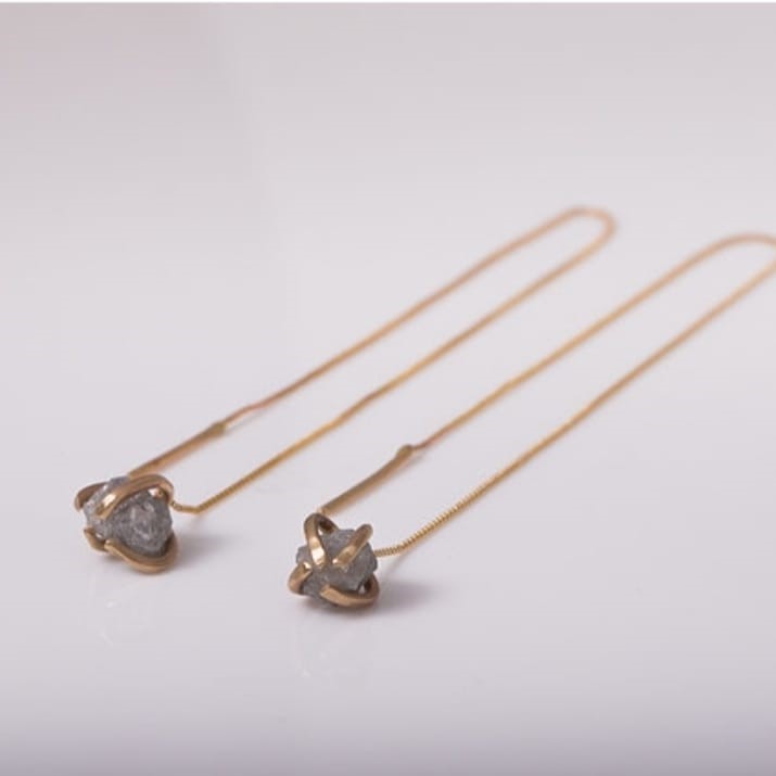 בתמונה עגילי יהלום גולמי קראט , משובצים בזהב 18 קראט
