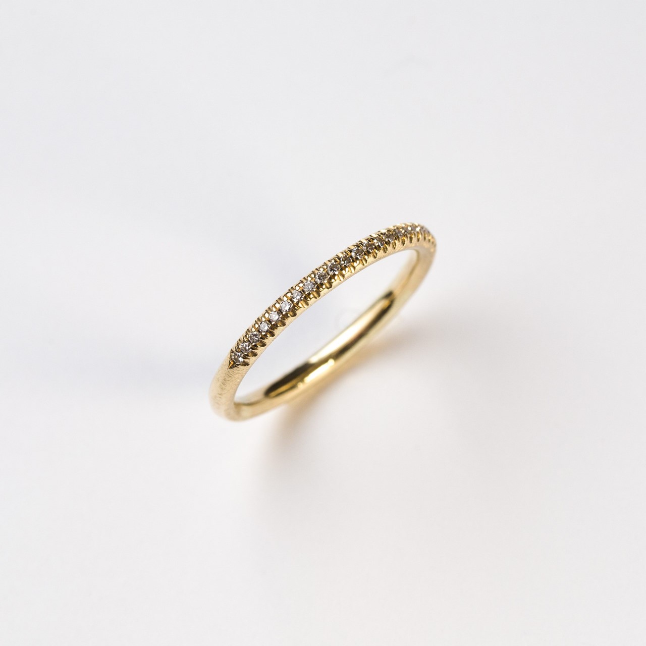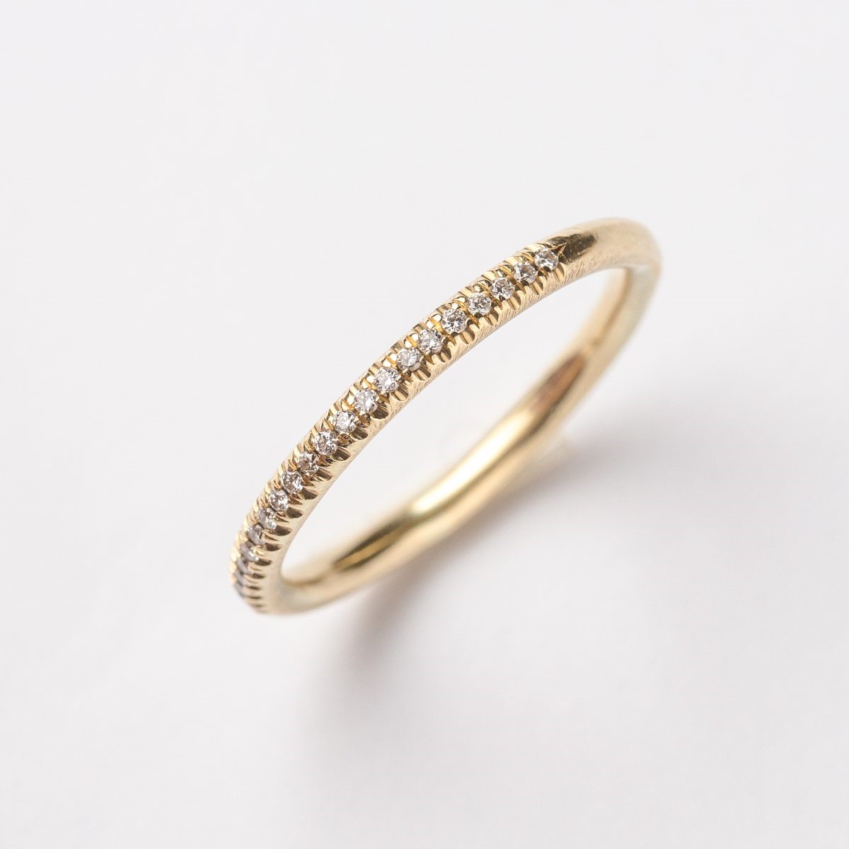 טבעת 14 קראט פרופיל 2 מ"מ משובצת בחלקה העליון יהלומים 1.3 מ"מ