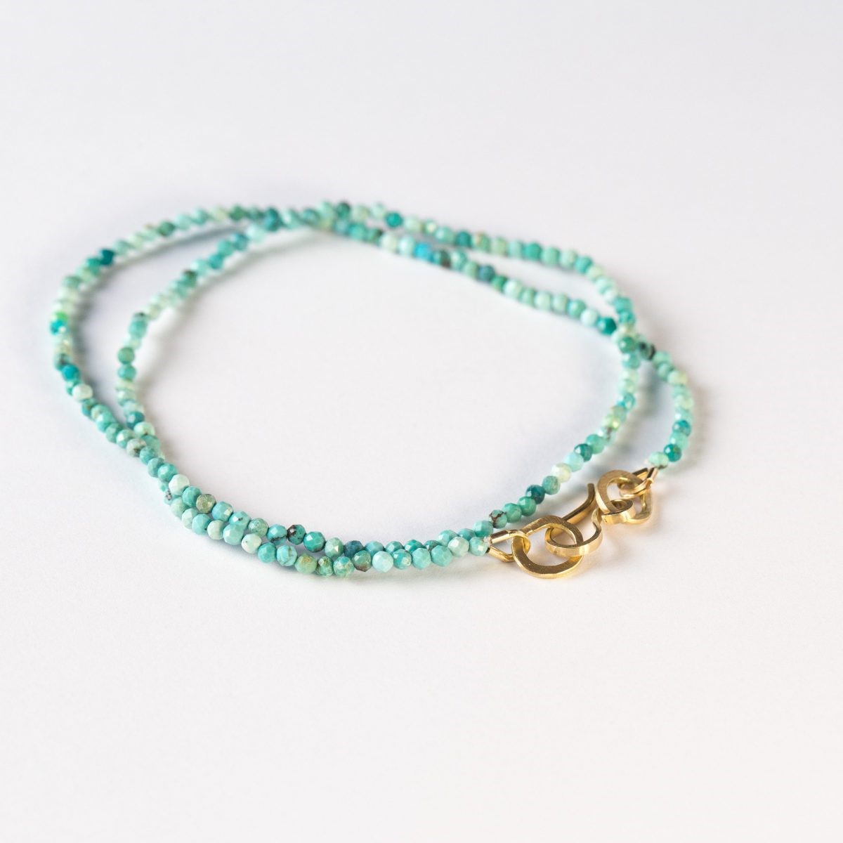 שרשרת טורקיז עם סוגר זהב 18 קראט – תכשיט קיץ צמוד בעבודת יד