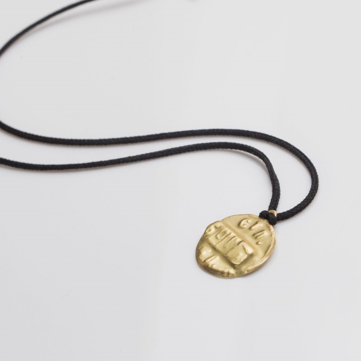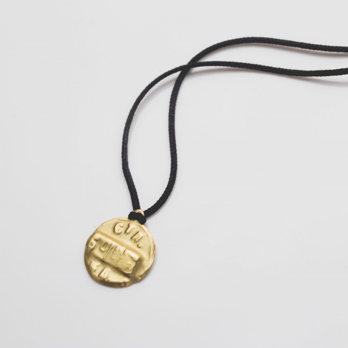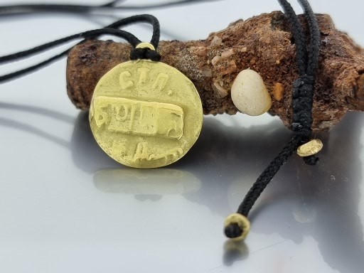 עם תליון עגול המעוצב בהשראת מאובן עתיק.