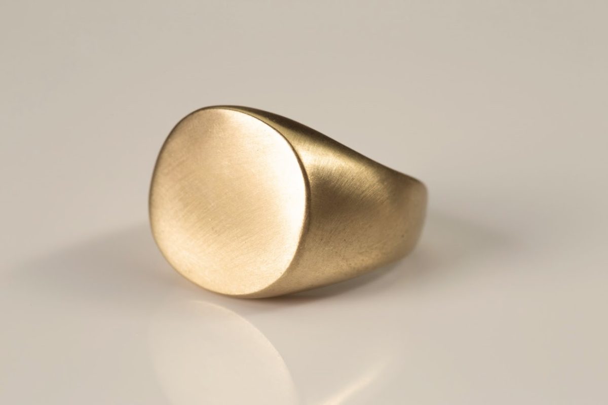טבעת חותם מזהב 18 קראט בעבודת יד, בעיצוב קלאסי ונקי עם נוכחות שקטה ומרשימה.