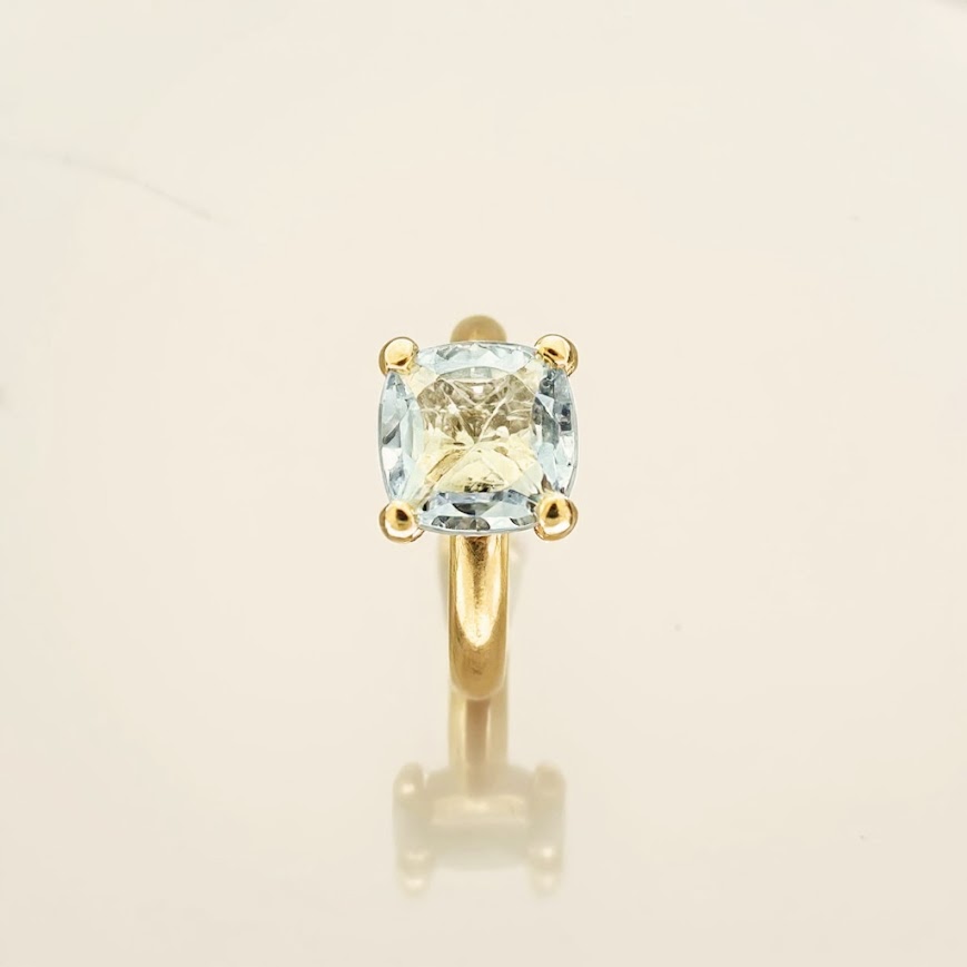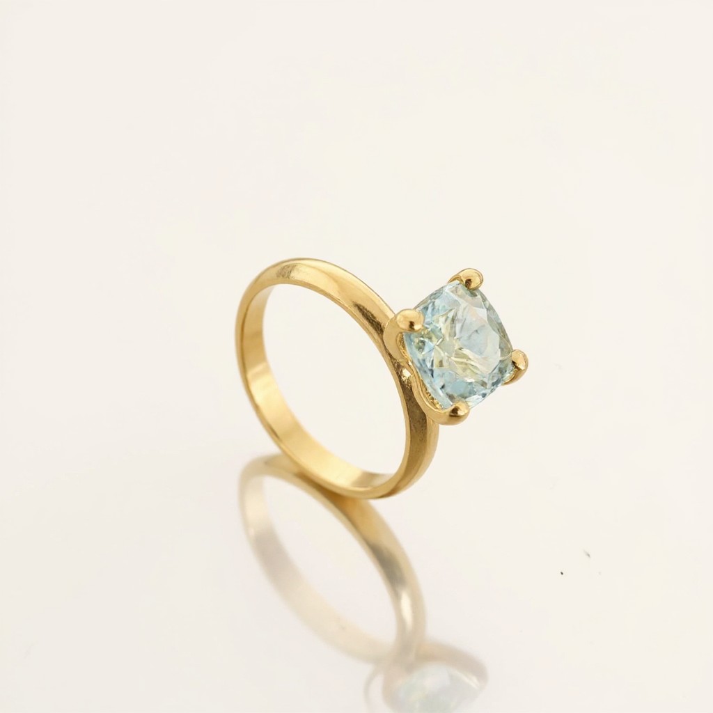 טבעת זהב 18 קראט בעבודת יד עם אבן אקווה מרין
