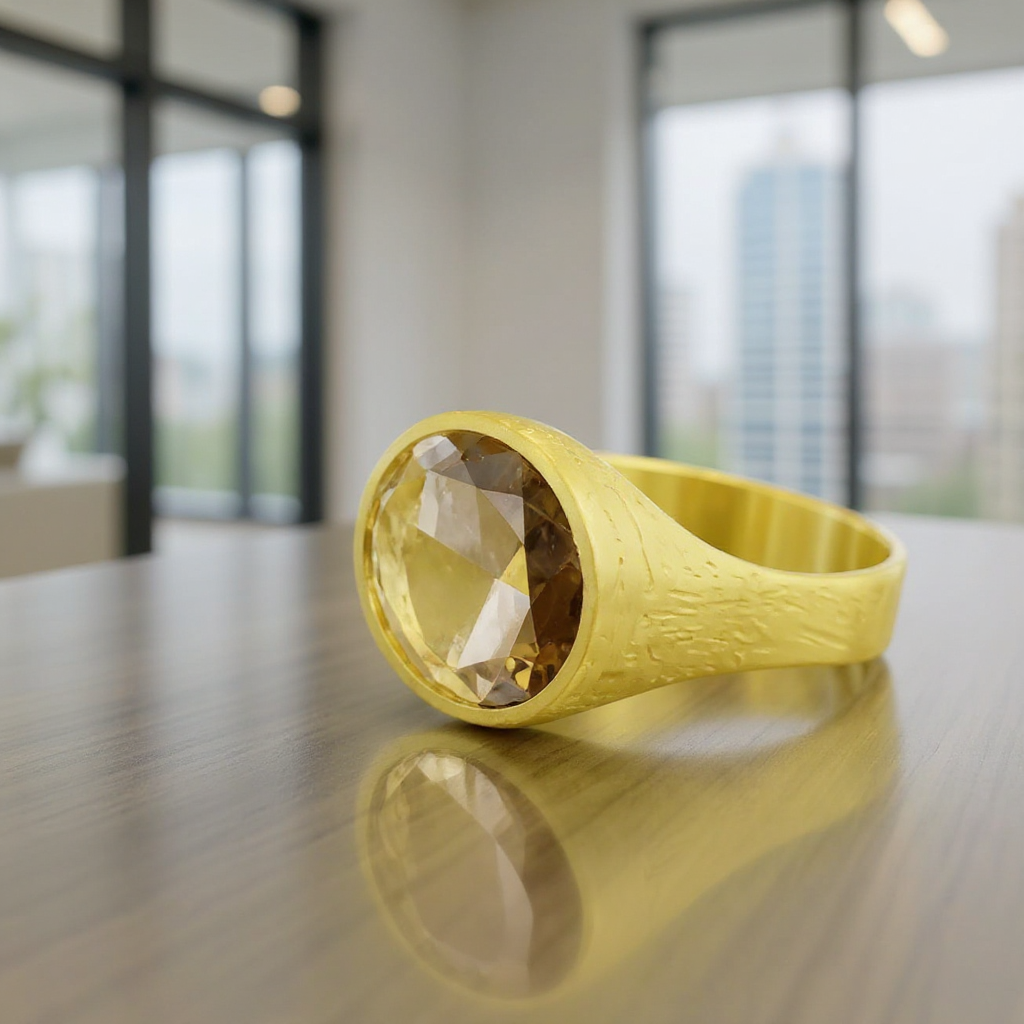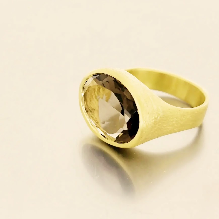 טבעת זהב 18 קראט עם אבן סמוקי קוורץ עיצוב חד פעמי בעבודת יד