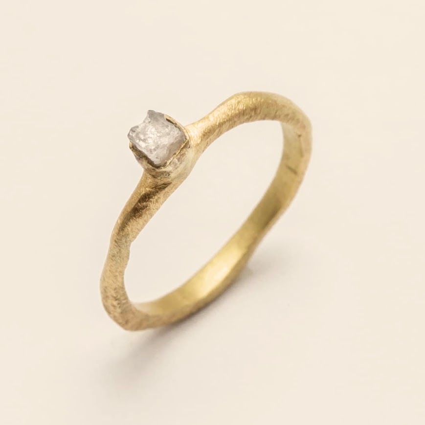 טבעת זהב 18 קראט עם יהלום גולמי בעיצוב אסימטרי