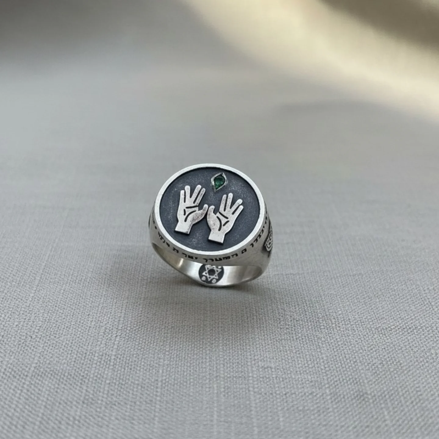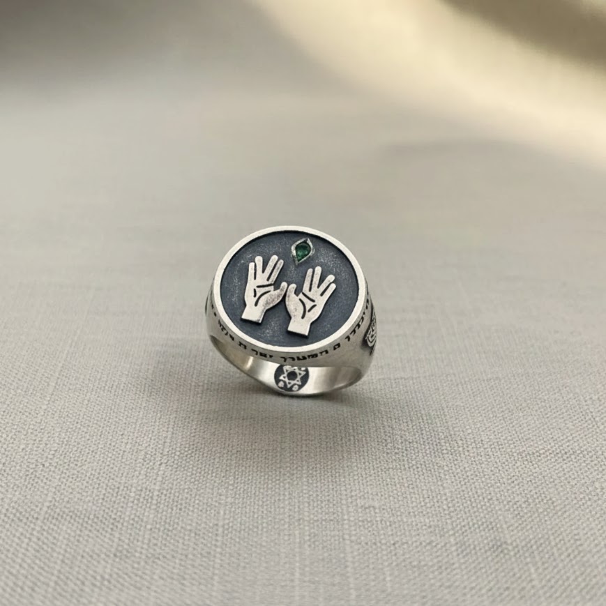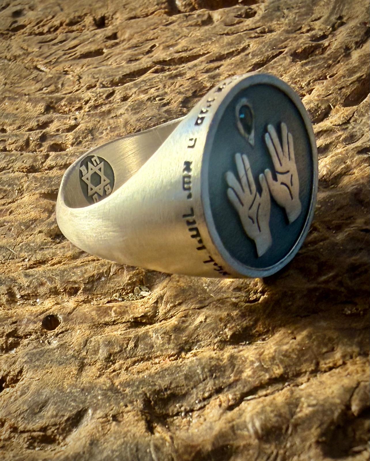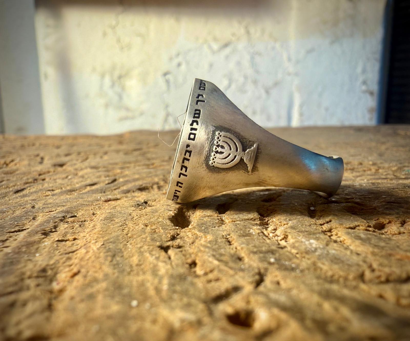 טבעת חותם לגבר בעבודת יד עיצוב סמלי היהדות