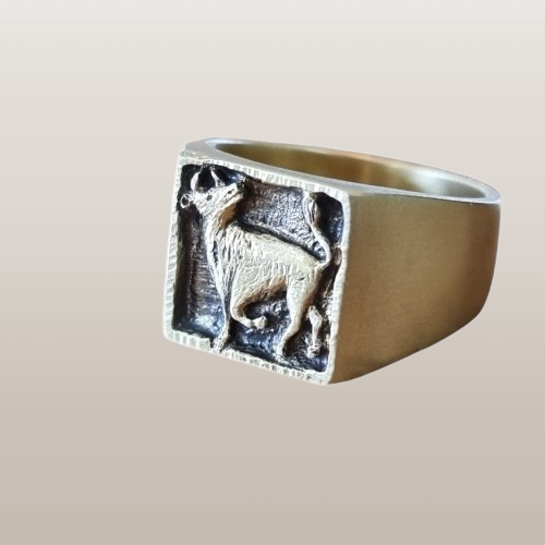 הלקוח ביקש טבעת בהשראת טבעת ישנה שאביו המנוח נהג לענוד – שור חרוט, עוצמתי, כמו שנצרב בזיכרון הילדות.
