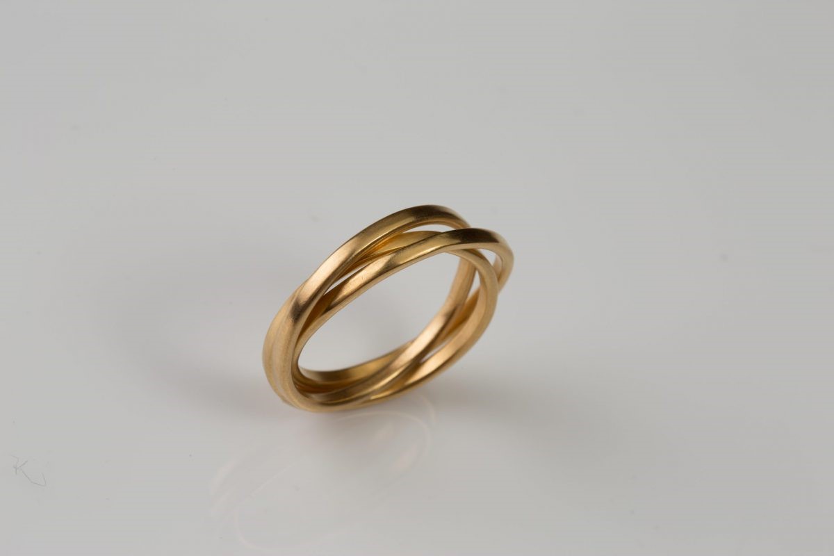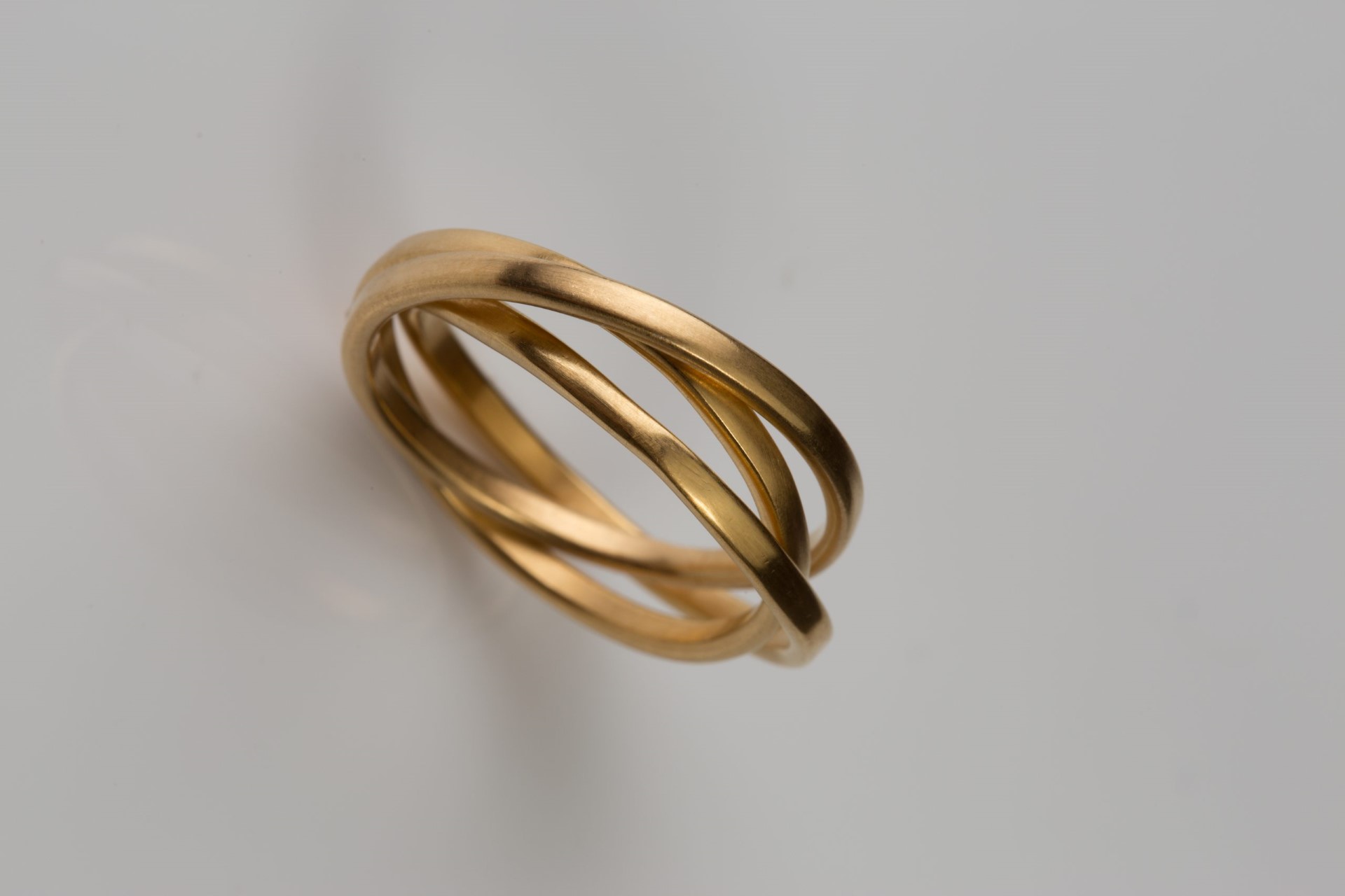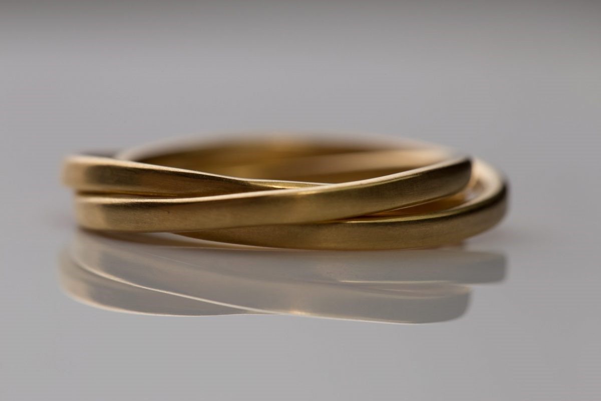 שילוב של שלוש טבעות זהב דקיקות, שכל אחת מהן עומדת בפני עצמה,