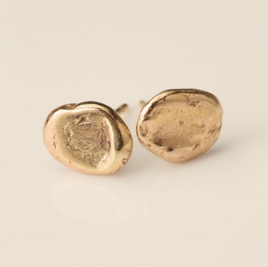 עגילי זהב 18 קראט במראה אורגני בעבודת יד