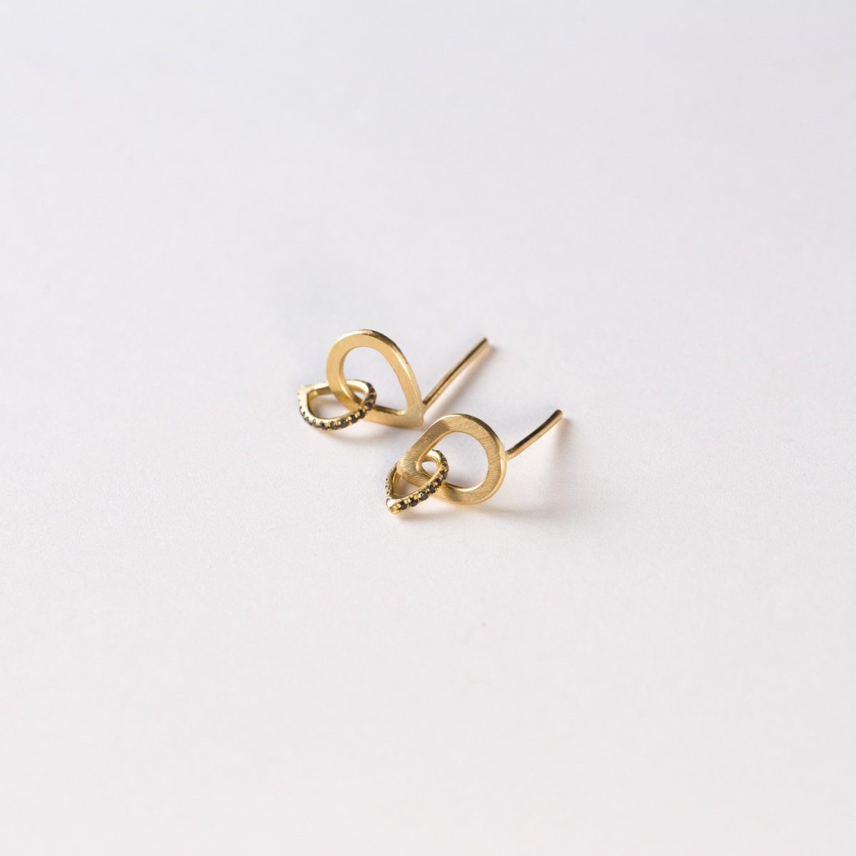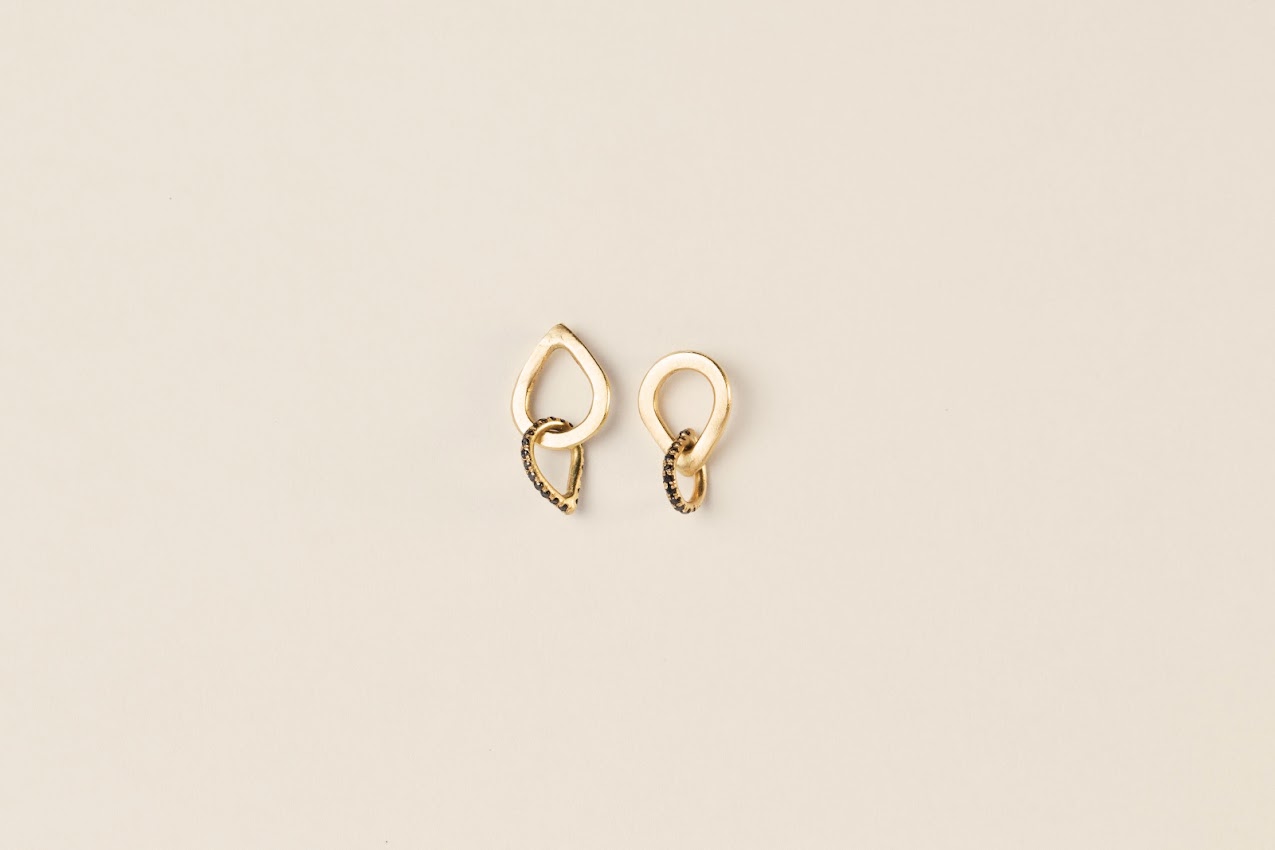 עגילי זהב 18 קראט בעבודת יד עם יהלומים שחורים – עיצוב לולאות עדין