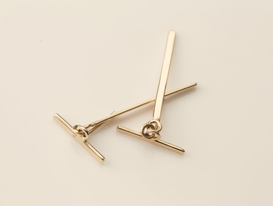 עגילי זהב קו בעבודת יד בעיצוב מינימליסטי