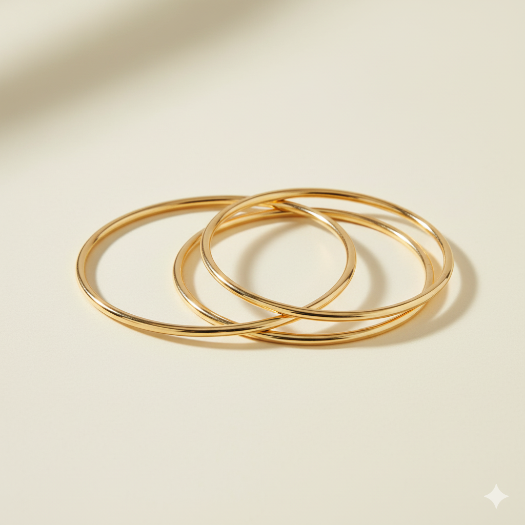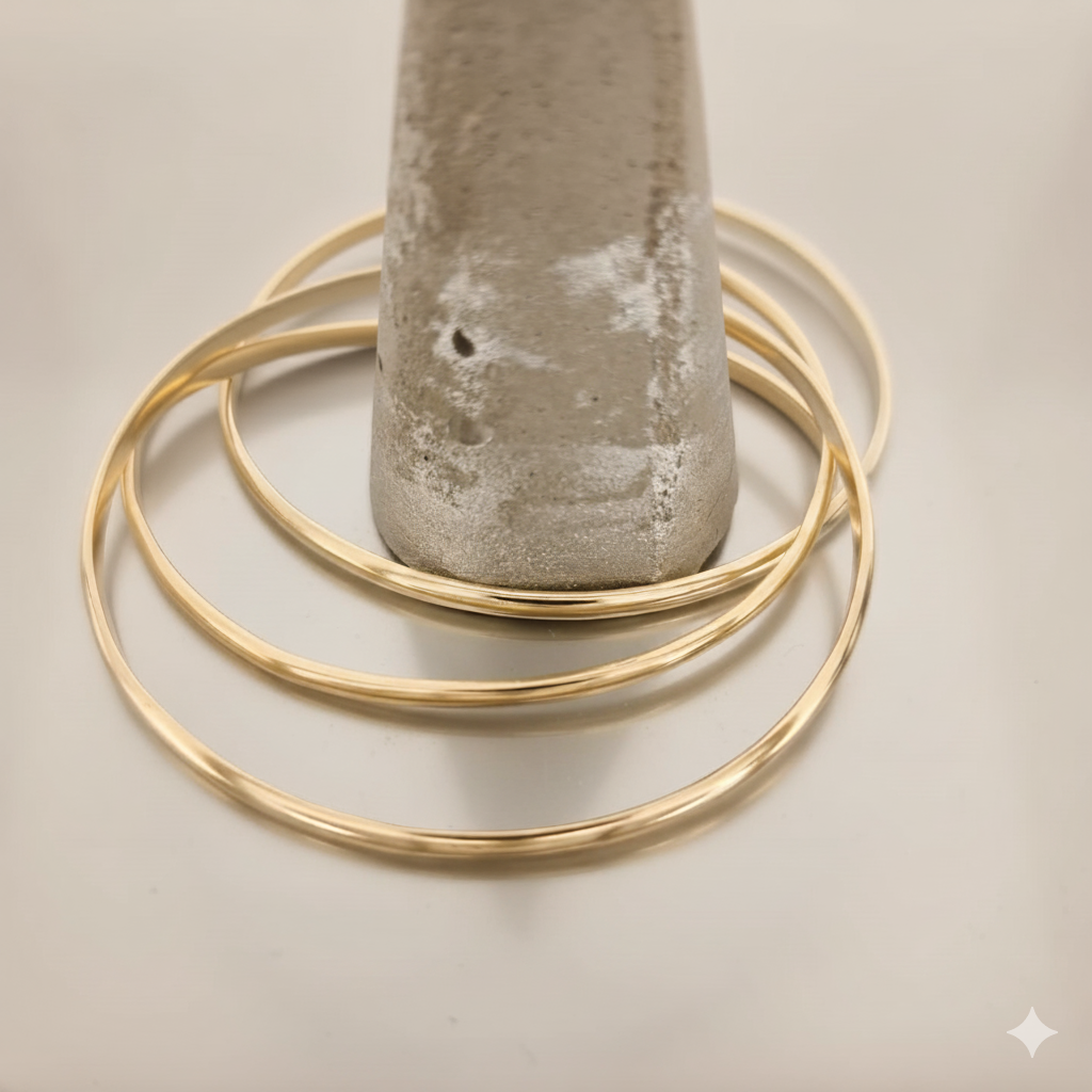 צמיד זהב קלאסי 14 קראט שלישיית בנגלים