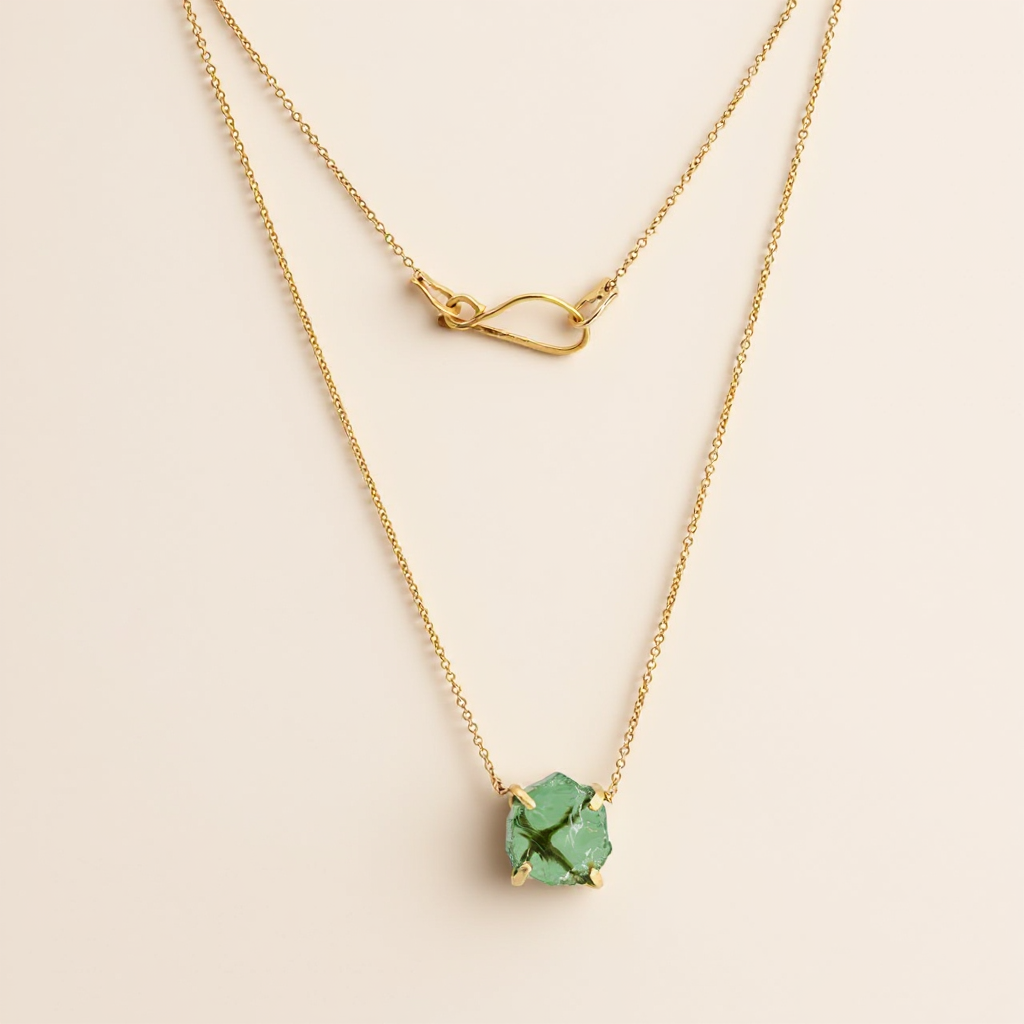 השרשרת הזו עשויה זהב 18 קראט, משובצת אבן טורמלין ירוק גולמי בעיצוב טבעי,