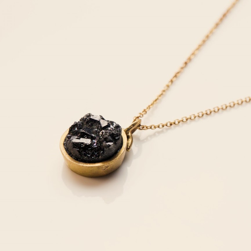 שרשרת זהב עם קוורץ שחור גולמי בעבודת יד