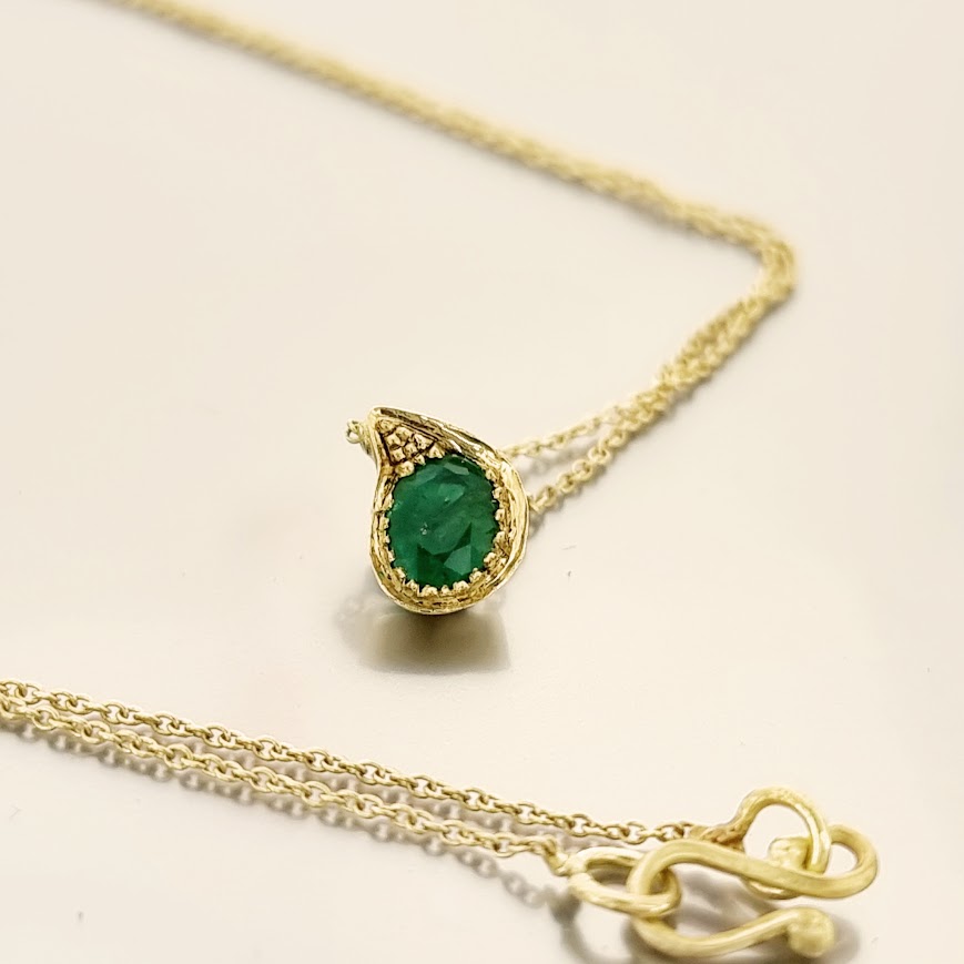 שרשרת זהב 18 קראט עם תליון אמרלד ייחודי – יצירה חד־פעמית בעבודת יד