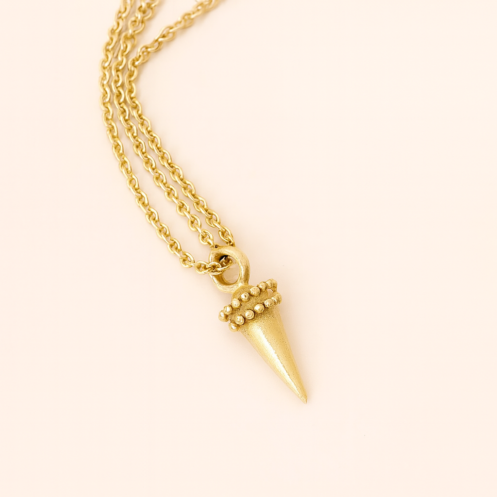 צורתו החרוטית של התליון מאזנת בין נוכחות אנרגטית לרוך עדין,