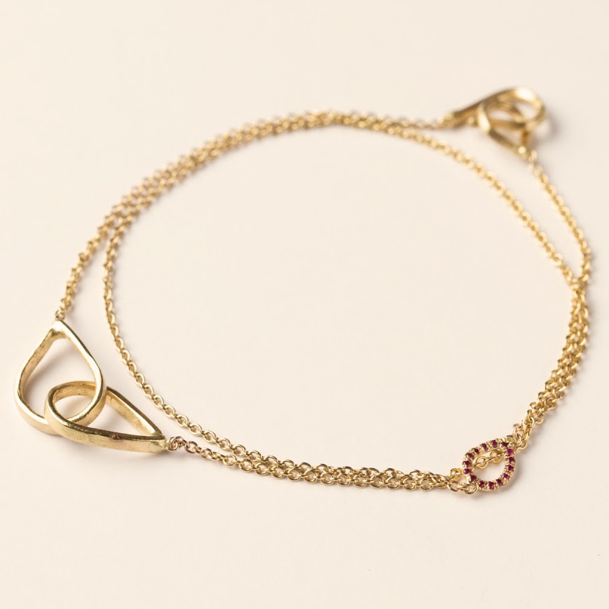 צמיד זהב 18 קראט עם טיפה משובצת רובי צמיד עדין מלופף פעמיים