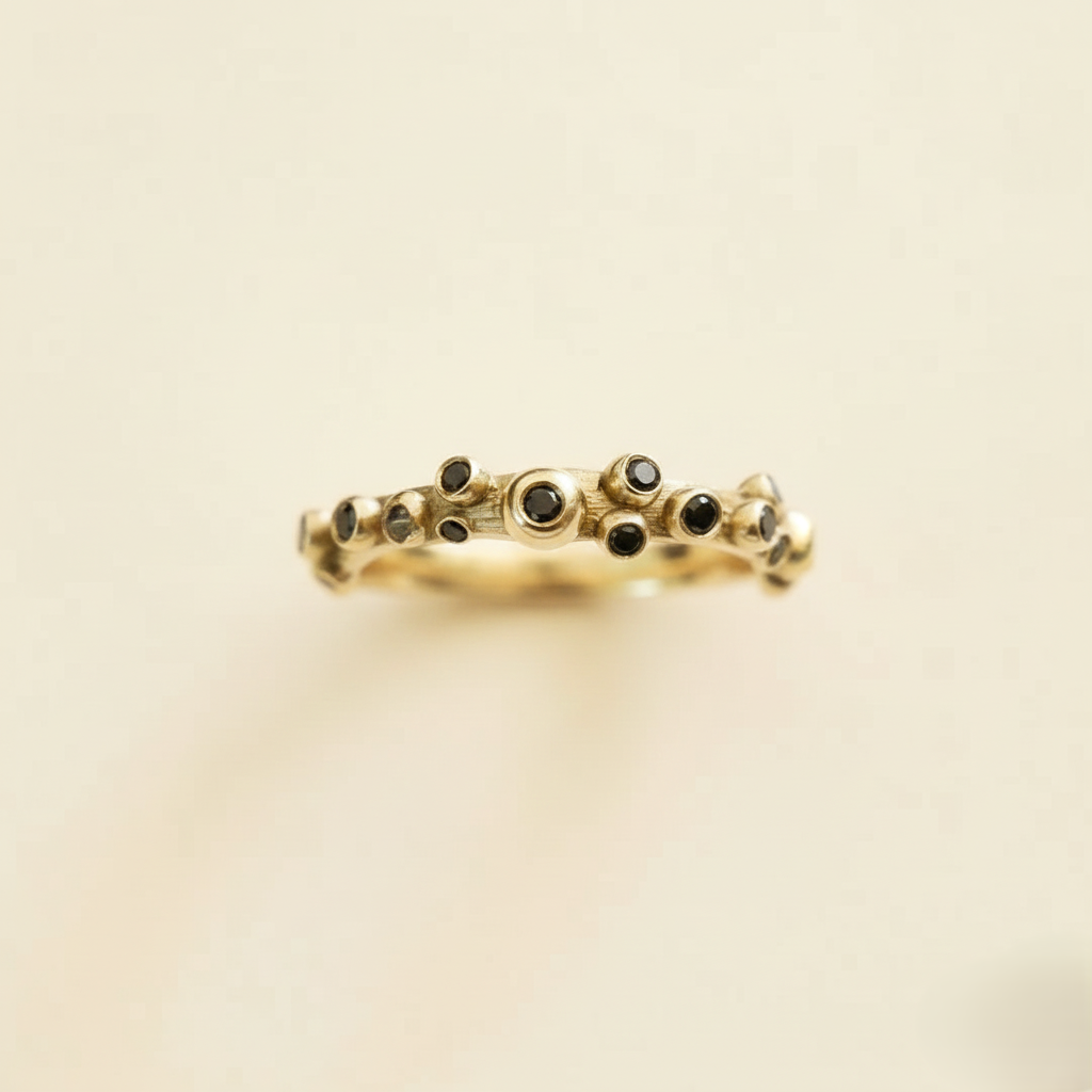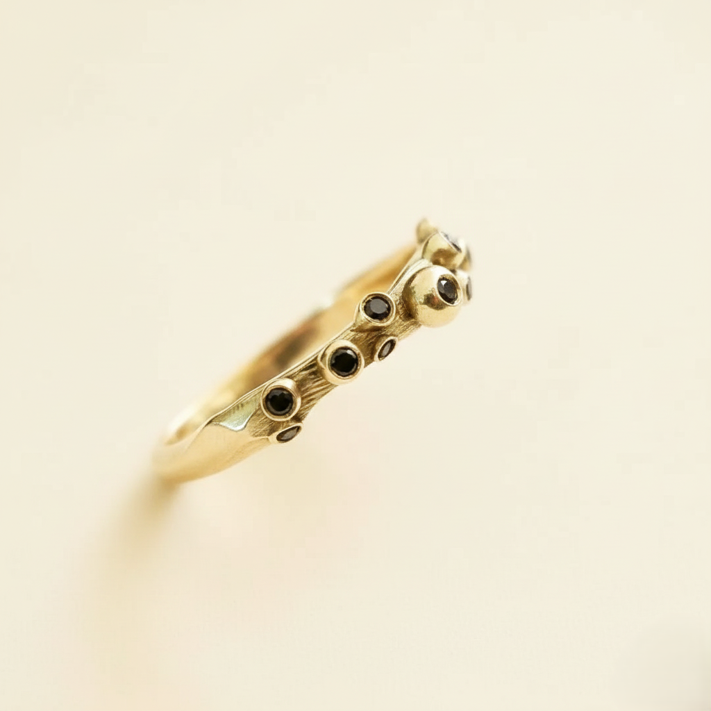 טבעת אלמוגית מזהב 18 קראט בעבודת יד עם יהלומים שחורים | צורפות פלוס