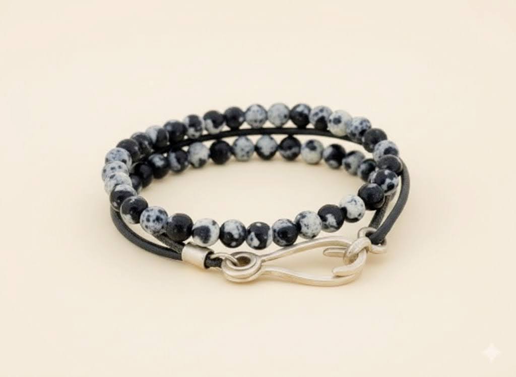 הצמיד מגיע עם חוט עור משובח וניתן לענוד אותו עם צמיד החרוזים המצורף או בלעדיו.
