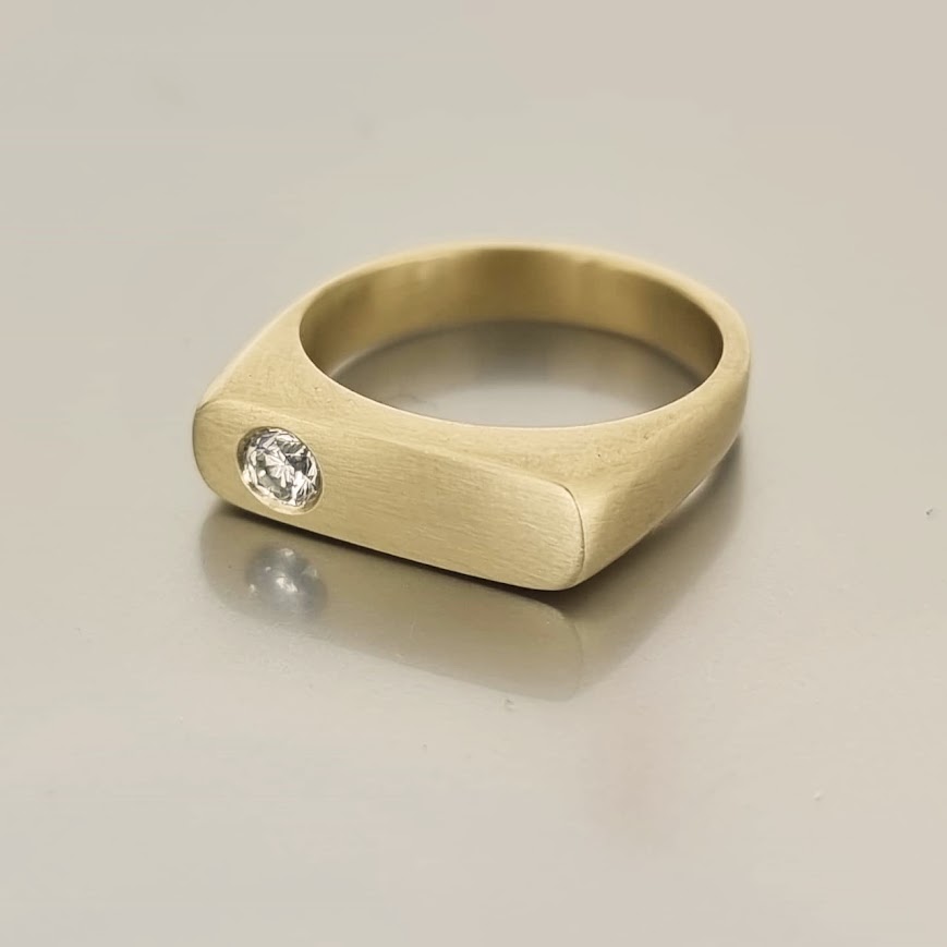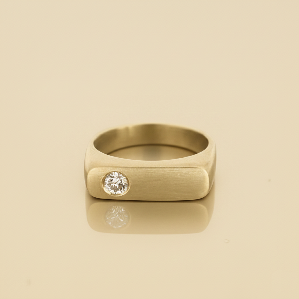 טבעת חותם מזהב 14 קראט, בעיצוב מינימליסטי־מודרני