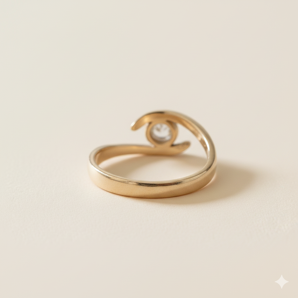 הטבעת משובצת ביהלום 40 נקודות (0.40ct) בשיבוץ עוטף המעניק הגנה מלאה לאבן ונוכחות אלגנטית ונצחית.