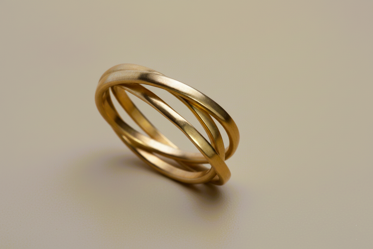 שילוב של שלוש טבעות זהב דקיקות, שכל אחת מהן עומדת בפני עצמה,